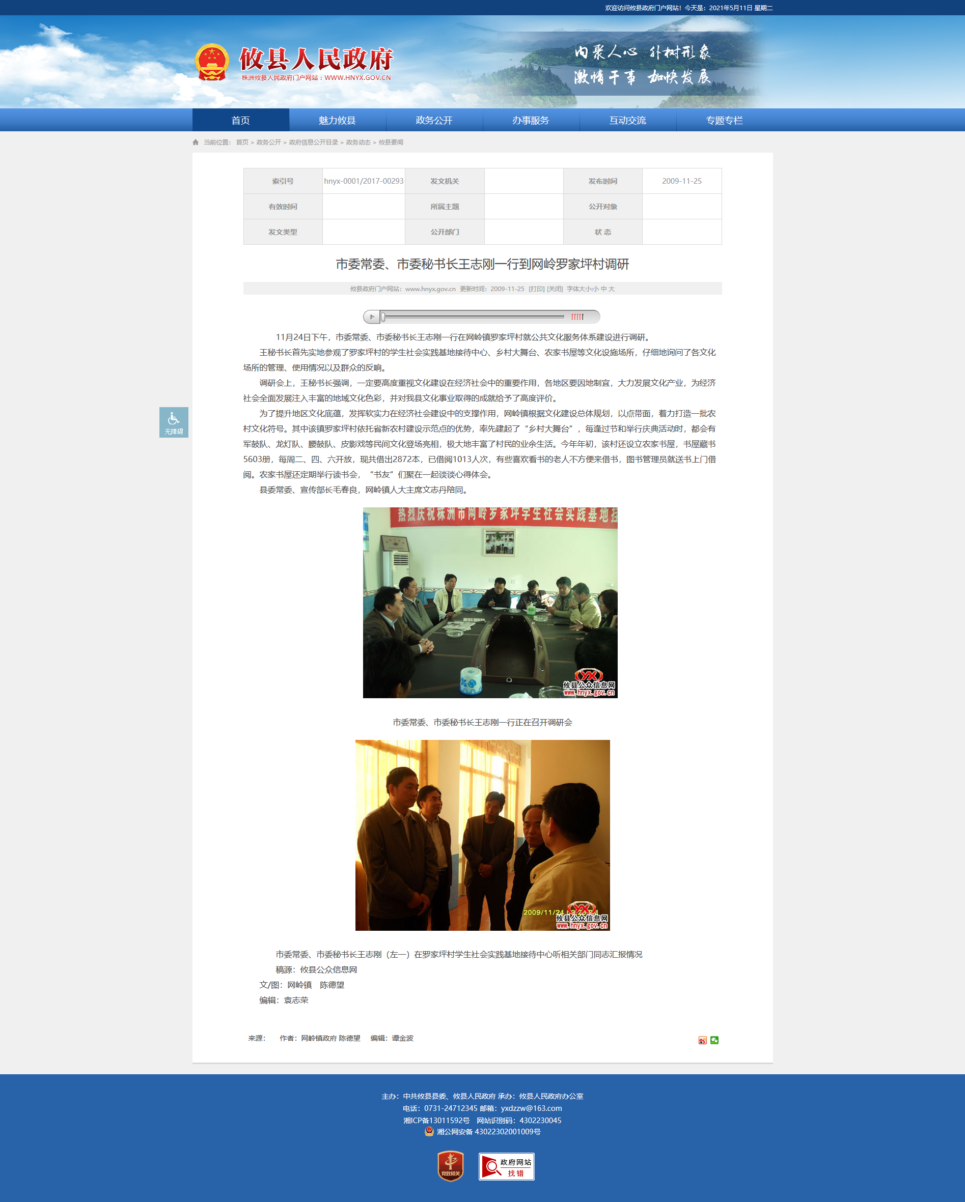 县委常委、宣传部长毛春良,网岭镇人大主席文志丹陪同。