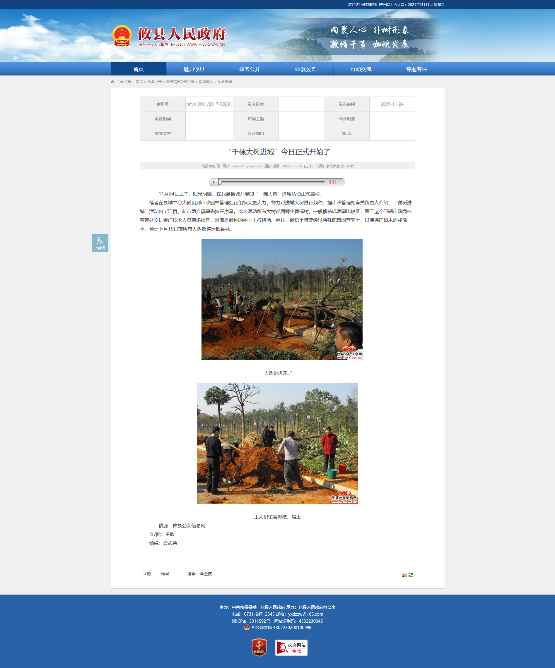 笔者在县城中心大道见到市政园林管理处正组织大量人力、物力对进城大树进行栽种。据市政管理处有关负责人介绍,“送树进城”活动由丫江桥、新市两乡镇率先拉开序幕。此次活动所有大树都属野生香樟树,一般移植成活率比较低,鉴于这个问题市政园林管理处安排专门技术人员现场指导,对即将栽种的树木进行修剪、包扎,栽培土壤要经过特殊配置的营养土,以便保证树木的成活率。预计下月15日前所有大树都将运抵县城。