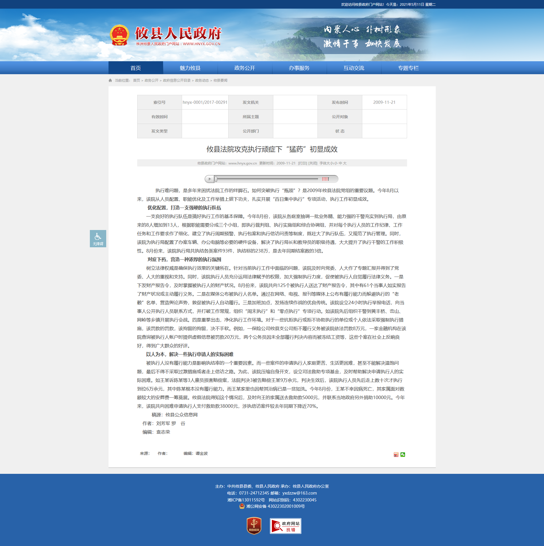 树立法律权威是确保执行效果的关键所在。针对当前执行工作中面临的问题,该院及时向党委、人大作了专题汇报并得到了党委、人大的重视和支持。同时,该院执行人员充分运用法律赋予的权限,加大强制执行力度,促使被执行人自觉履行法律义务。一是下发财产报告令,及时掌握被执行人的财产状况。8月份来,该院共向125个被执行人送达了财产报告令,其中有61个当事人如实报告了财产状况或主动履行义务。二是在媒体公布被执行人名单。通过在网络、电视、报刊等媒体上公布有履行能力而躲避执行的“老赖”名单,营造舆论声势,敦促被执行人自动履行。三是加班加点,发扬连续作战的优良传统。该院设立24小时执行举报电话,向当事人公开执行人员联系方式,并打破工作常规,组织“周末执行”和“零点执行”专项行动。如该院先后组织干警到黄丰桥、峦山、网岭等乡镇开展执行会战。四是重拳出击,净化执行工作环境。对于一些抗拒执行或拒不协助执行的单位或个人依法采取强制执行措施,该罚款的罚款,该拘留的拘留,决不手软。例如,一保险公司攸县支公司拒不履行义务被该院依法罚款8万元,一家金融机构在该院查询被执行人帐户时提供虚假信息被罚款20万元,两个公务员因未全部履行判决内容而被冻结工资等,这些个案在社会上反响良好,得到广大群众的好评。