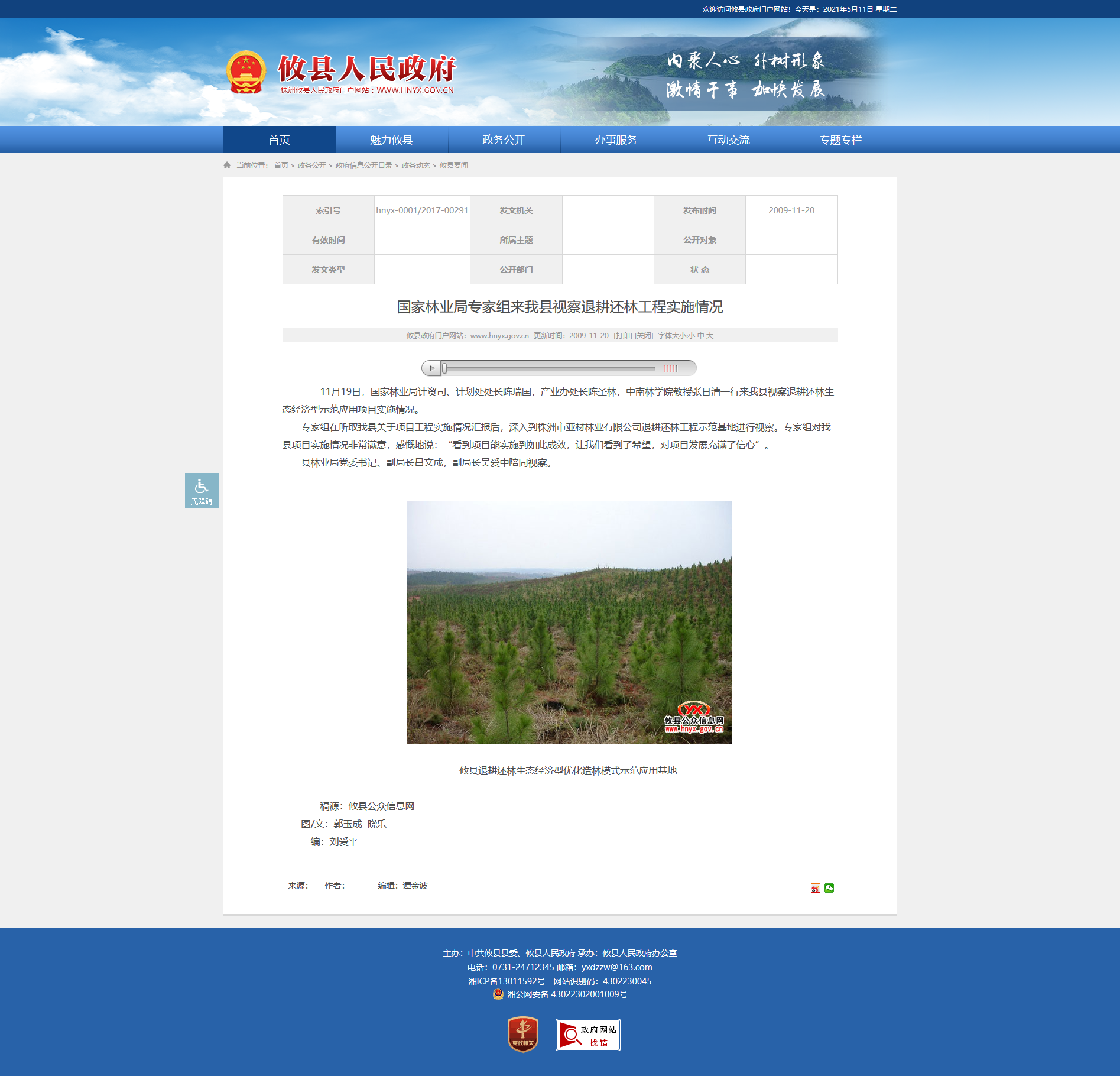 11月19日,国家林业局计资司、计划处处长陈瑞国,产业办处长陈圣林,中南林学院教授张日清一行来我县视察退耕还林生态经济型示范应用项目实施情况。
