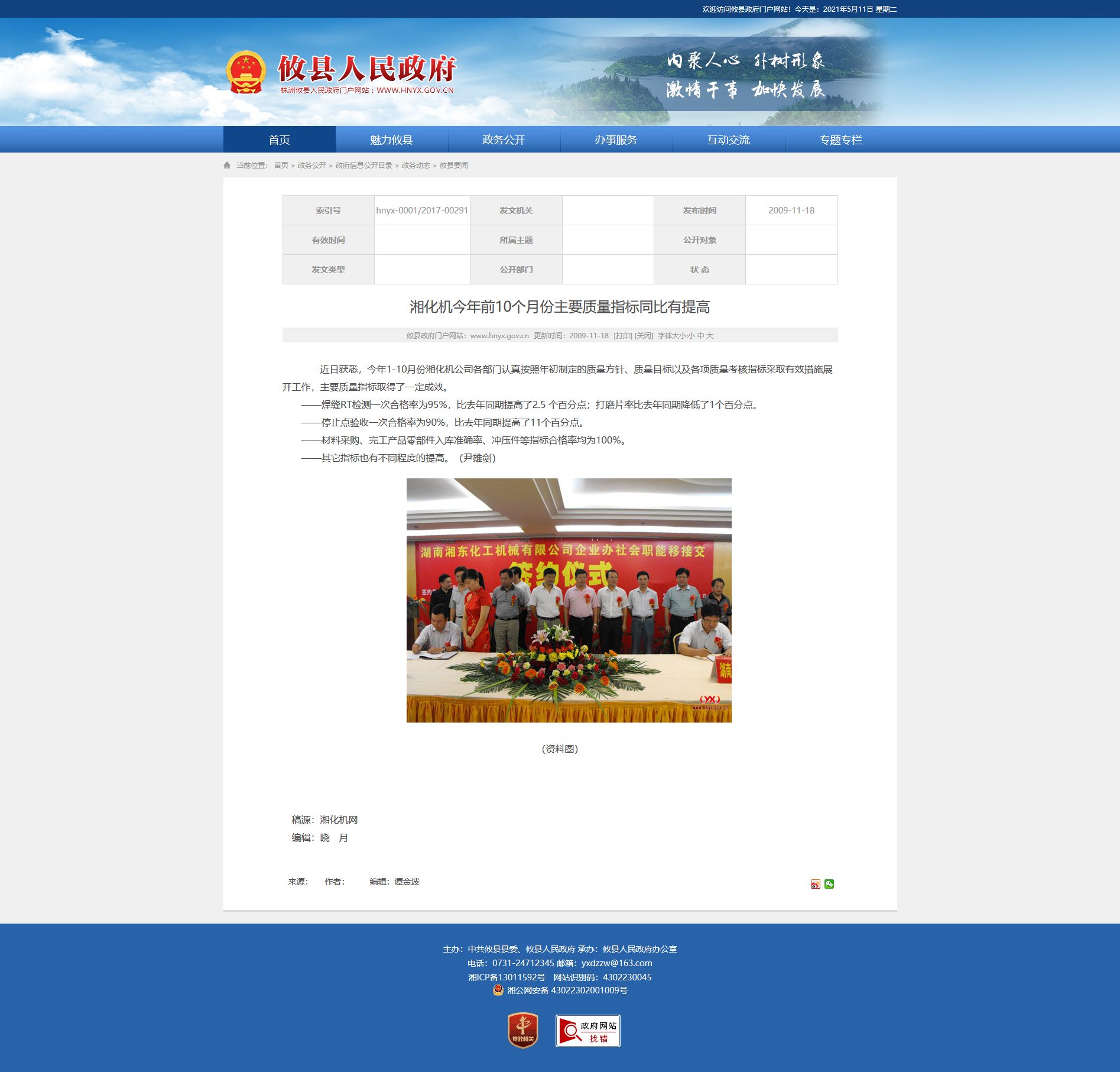近日获悉,今年1-10月份湘化机公司各部门认真按照年初制定的质量方针、质量目标以及各项质量考核指标采取有效措施展开工作,主要质量指标取得了一定成效。