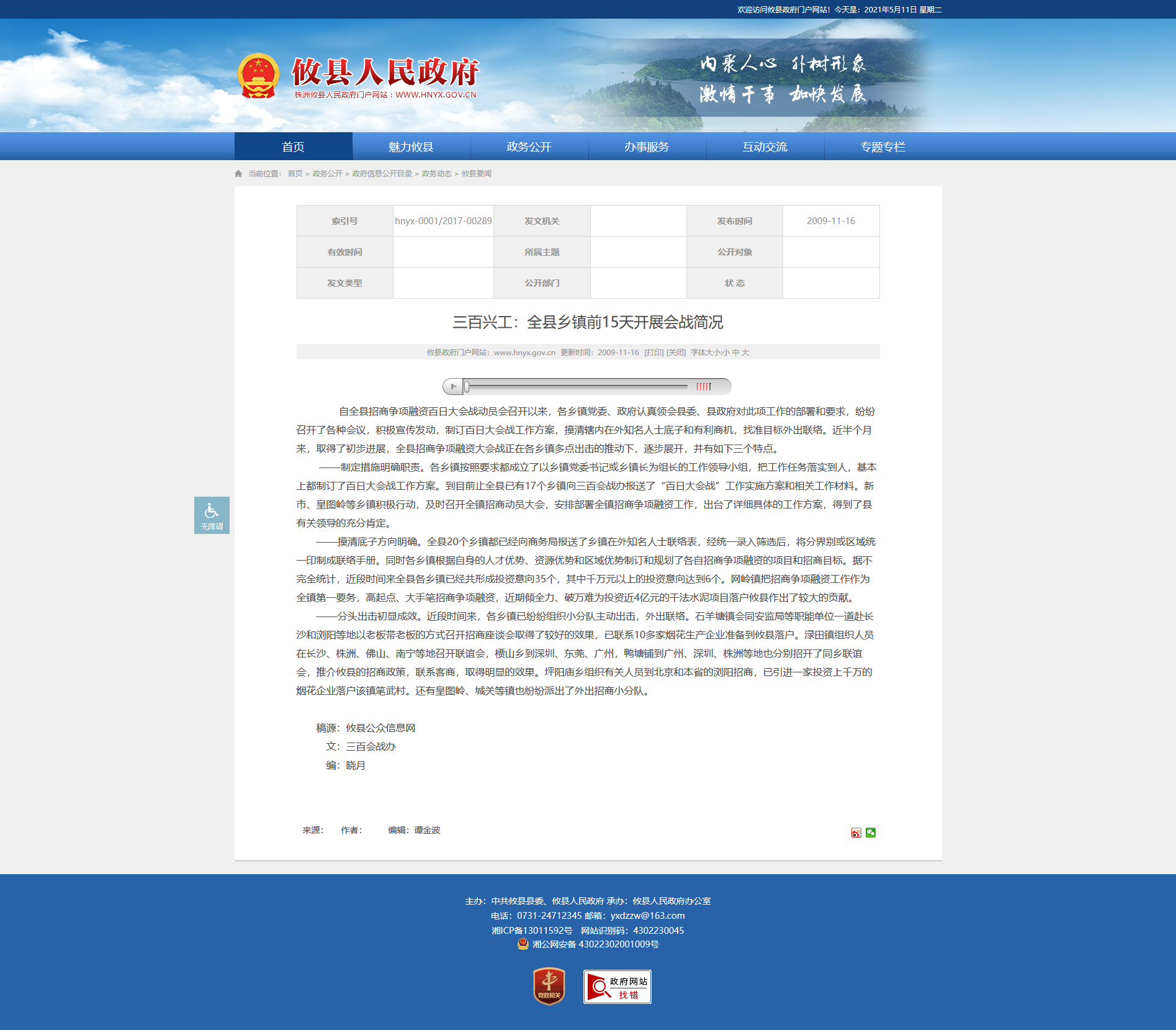——摸清底子方向明确。全县20个乡镇都已经向商务局报送了乡镇在外知名人士联络表,经统一录入筛选后,将分界别或区域统一印制成联络手册。同时各乡镇根据自身的人才优势、资源优势和区域优势制订和规划了各自招商争项融资的项目和招商目标。据不完全统计,近段时间来全县各乡镇已经共形成投资意向35个,其中千万元以上的投资意向达到6个。网岭镇把招商争项融资工作作为全镇第一要务,高起点、大手笔招商争项融资,近期倾全力、破万难为投资近4亿元的干法水泥项目落户攸县作出了较大的贡献。