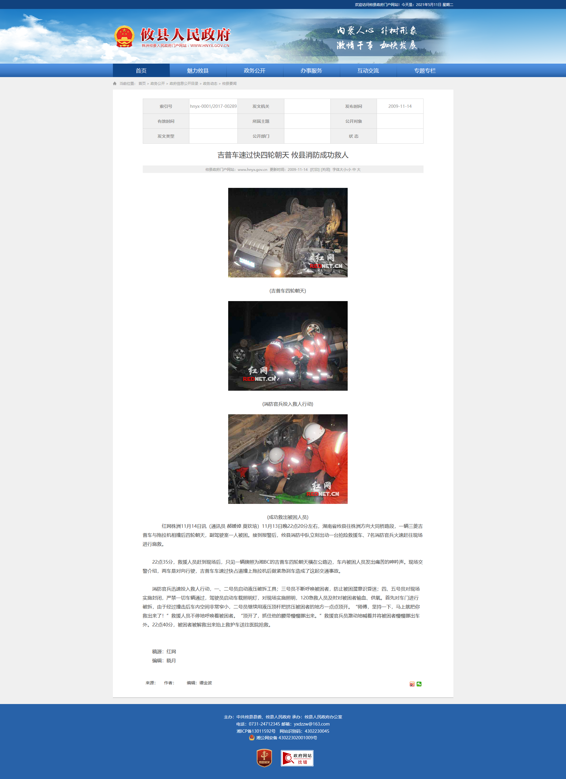 22点35分,救援人员赶到现场后,只见一辆牌照为湘BC的吉普车四轮朝天横在公路边,车内被困人员发出痛苦的呻吟声。现场交警介绍,两车是对向行驶,吉普车车速过快占道撞上拖拉机后做紧急刹车造成了这起交通事故。