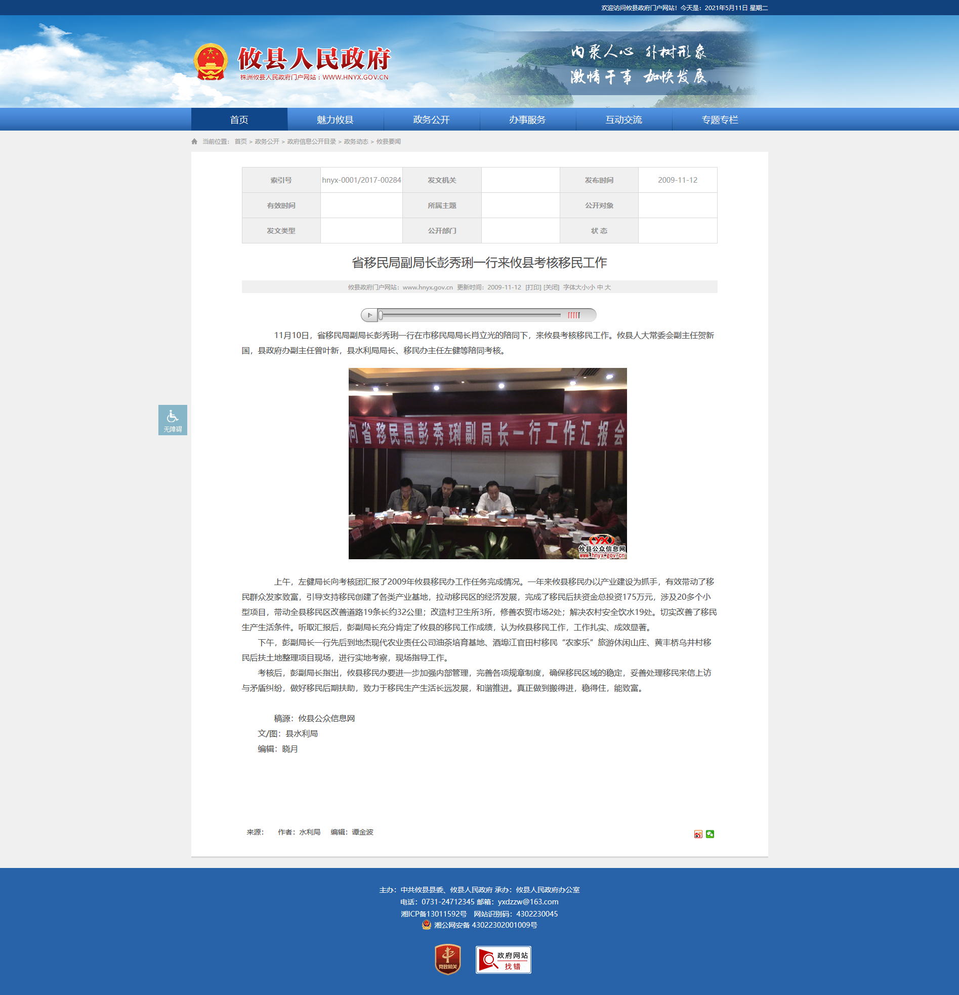 11月10日,省移民局副局长彭秀琍一行在市移民局局长肖立光的陪同下,来攸县考核移民工作。攸县人大常委会副主任贺新国,县政府办副主任曾叶新,县水利局局长、移民办主任左健等陪同考核。