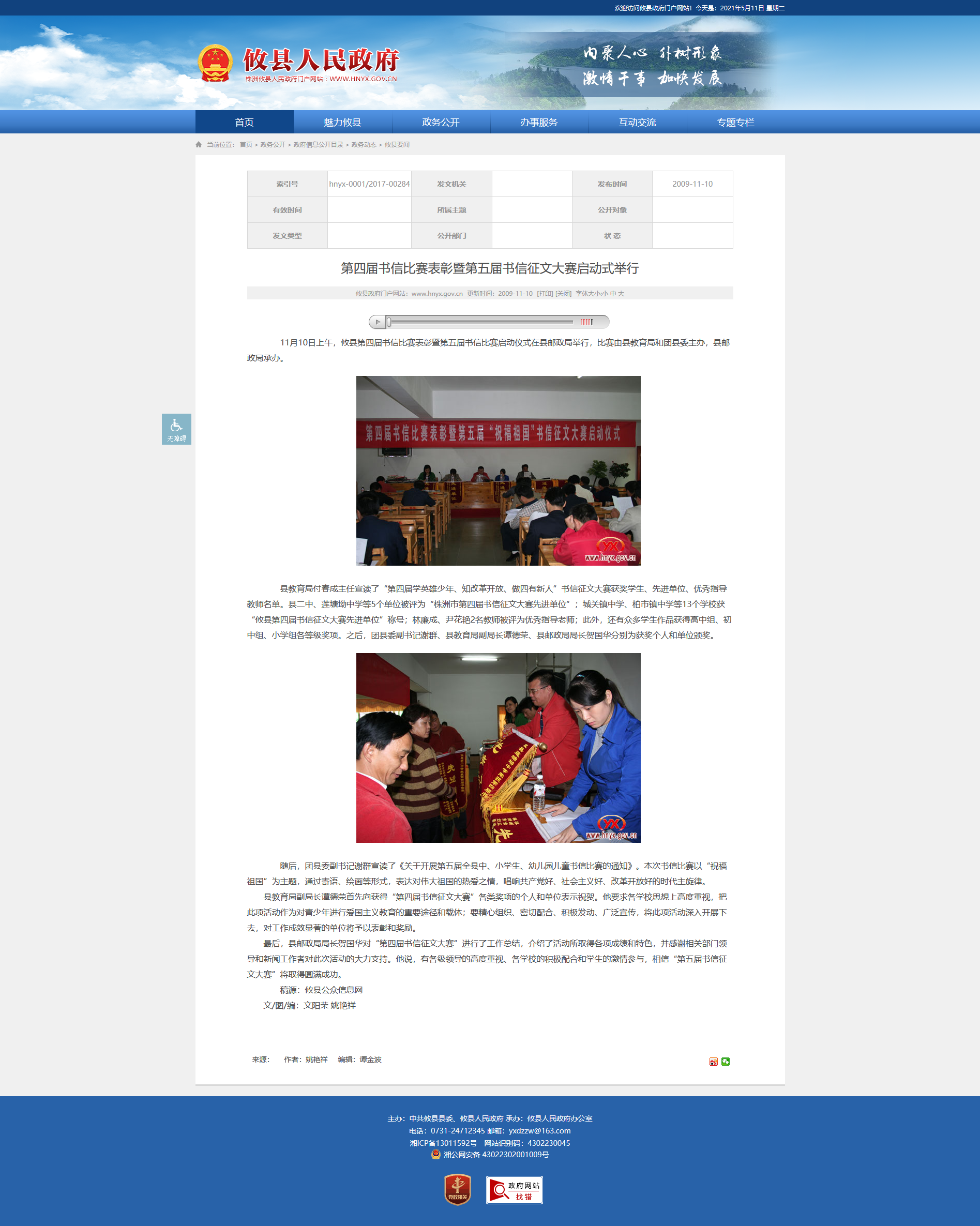 11月10日上午,攸县第四届书信比赛表彰暨第五届书信比赛启动仪式在县邮政局举行,比赛由县教育局和团县委主办,县邮政局承办。