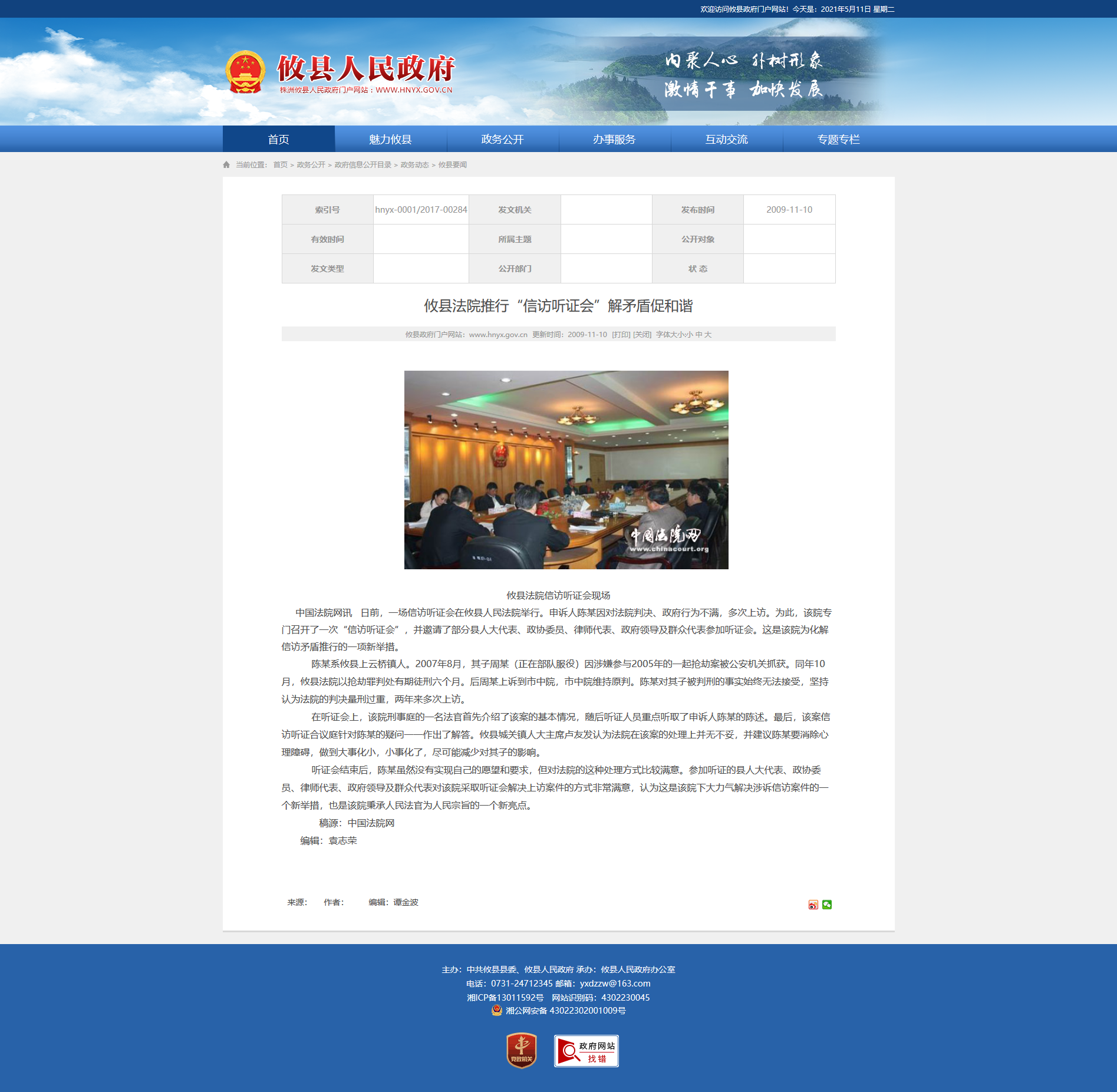 中国法院网讯 日前,一场信访听证会在攸县人民法院举行。申诉人陈某因对法院判决、政府行为不满,多次上访。为此,该院专门召开了一次“信访听证会”,并邀请了部分县人大代表、政协委员、律师代表、政府领导及群众代表参加听证会。这是该院为化解信访矛盾推行的一项新举措。