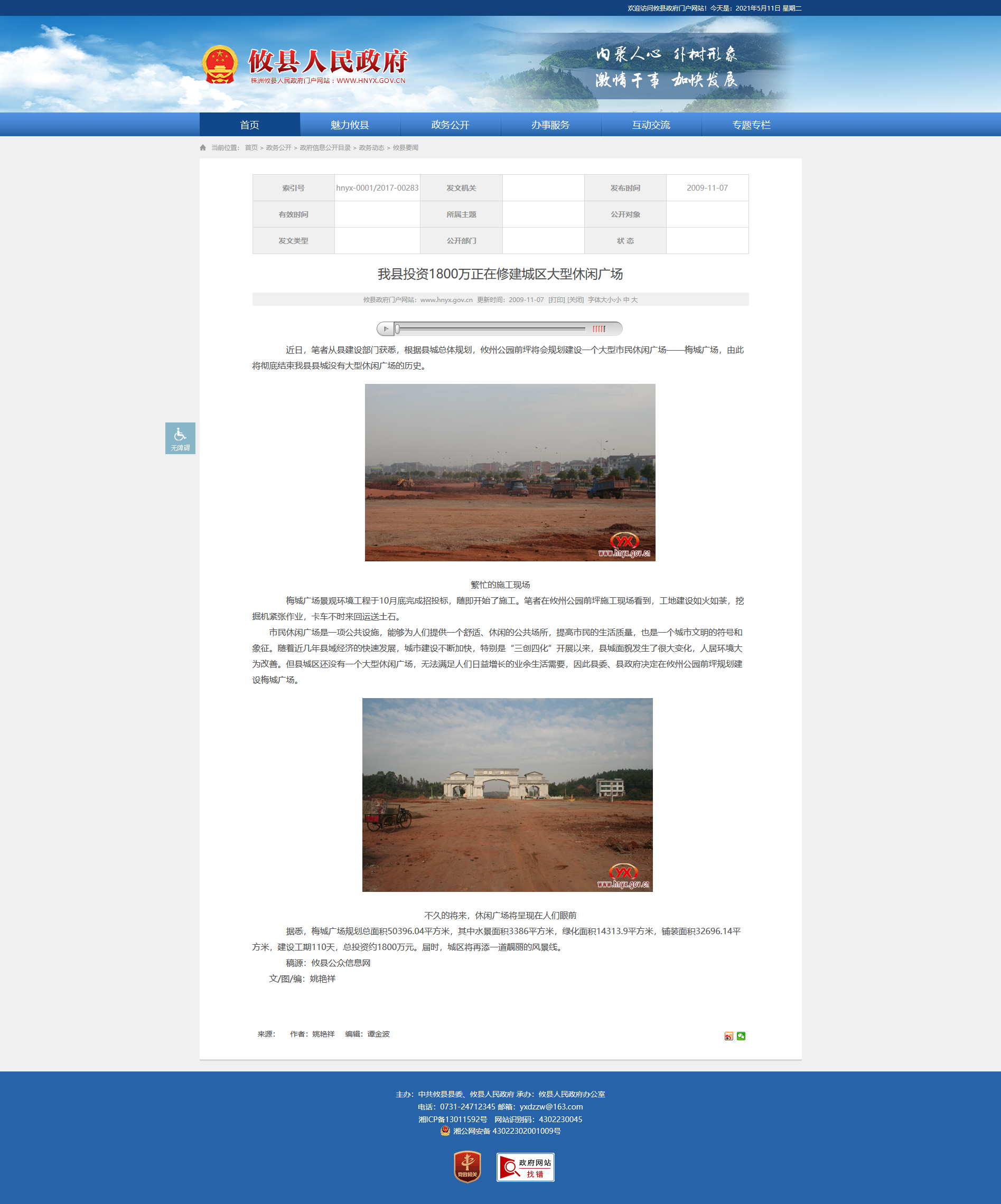 梅城广场景观环境工程于10月底完成招投标,随即开始了施工。笔者在攸州公园前坪施工现场看到,工地建设如火如荼,挖掘机紧张作业,卡车不时来回运送土石。