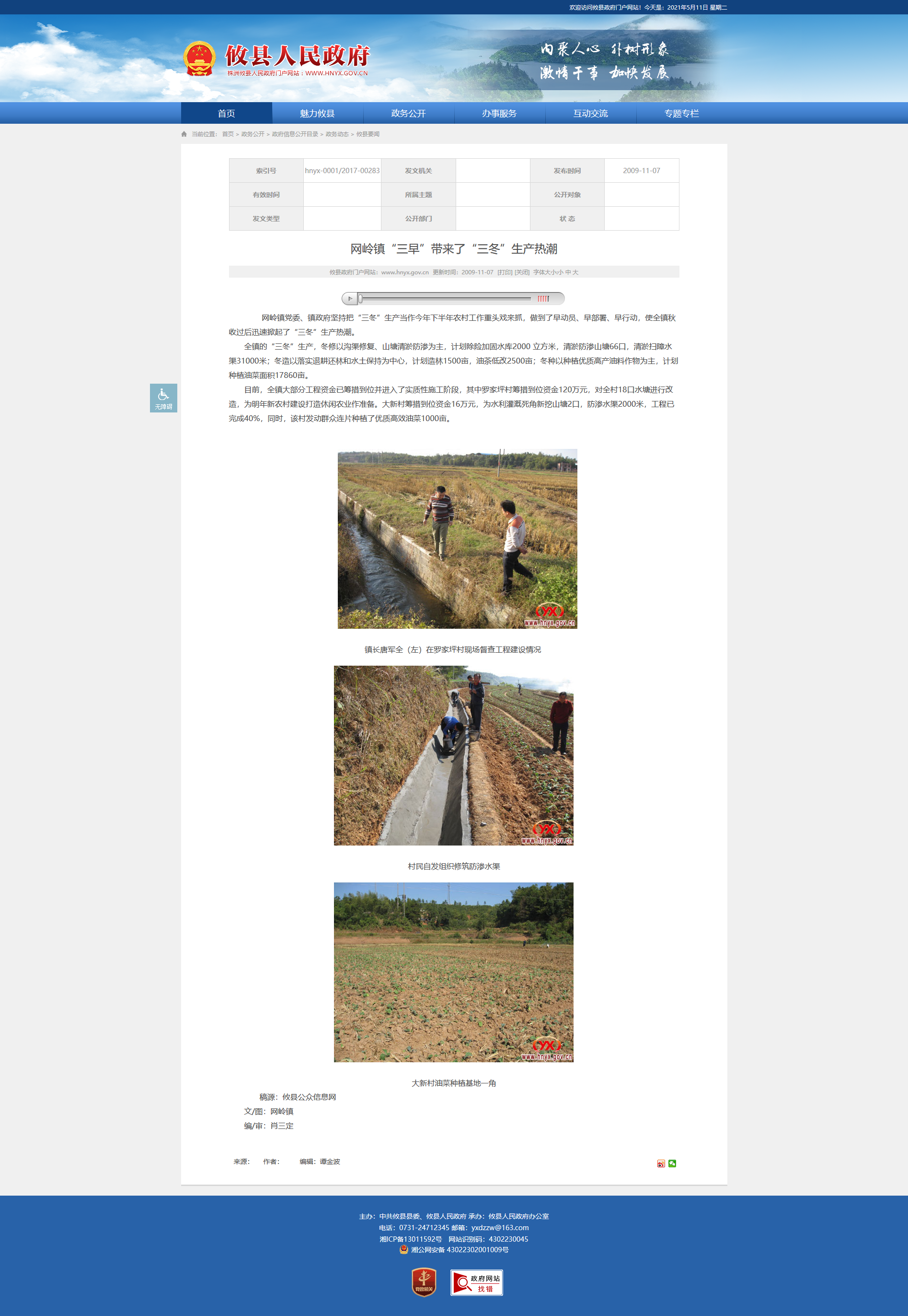 全镇的“三冬”生产,冬修以沟渠修复、山塘清淤防渗为主,计划除险加固水库2000 立方米,清淤防渗山塘66口,清淤扫障水渠31000米;冬造以落实退耕还林和水土保持为中心,计划造林1500亩,油茶低改2500亩;冬种以种植优质高产油料作物为主,计划种植油菜面积17860亩。