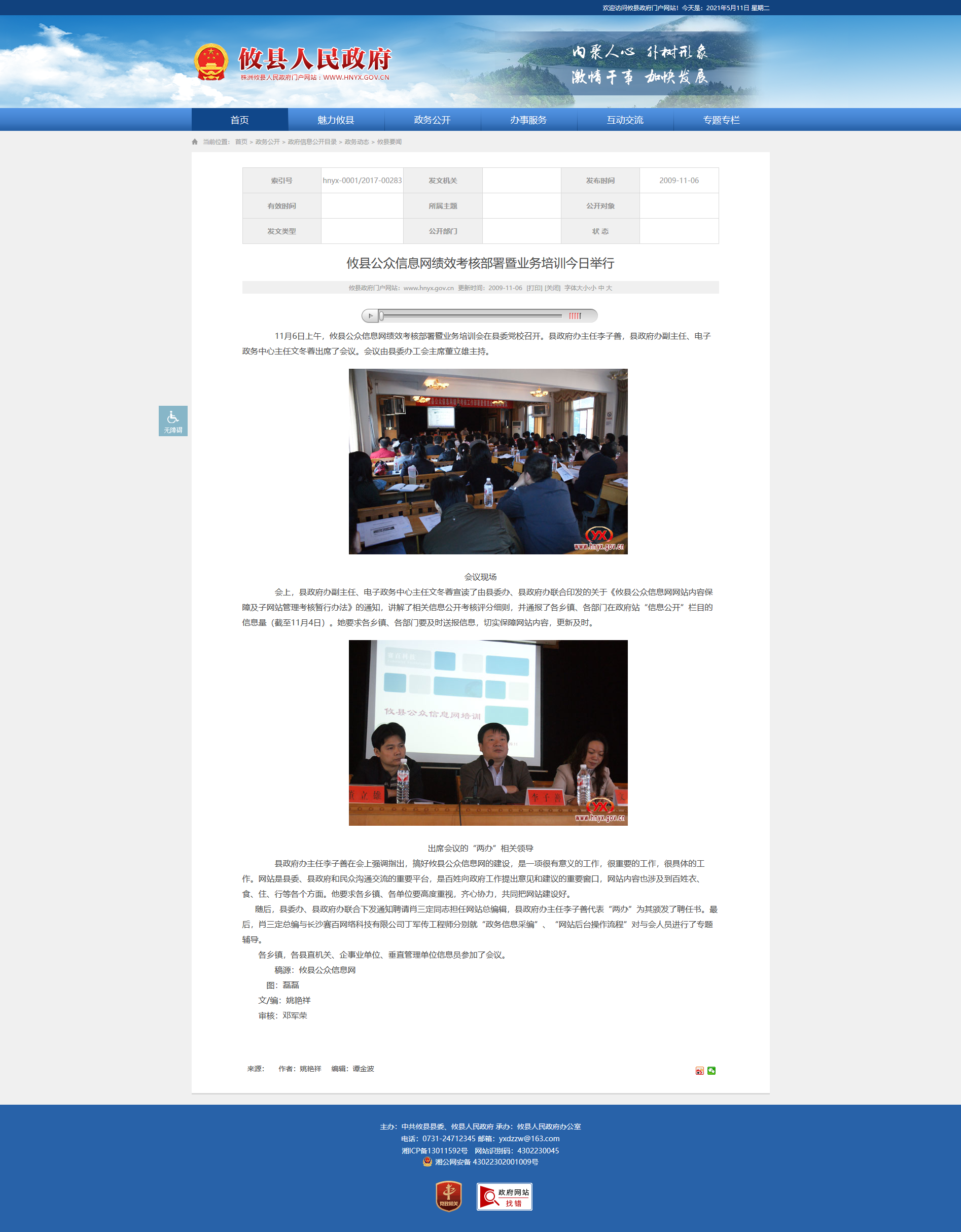 会上,县政府办副主任、电子政务中心主任文冬蓉宣读了由县委办、县政府办联合印发的关于《攸县公众信息网网站内容保障及子网站管理考核暂行办法》的通知,讲解了相关信息公开考核评分细则,并通报了各乡镇、各部门在政府站“信息公开”栏目的信息量(截至11月4日)。她要求各乡镇、各部门要及时送报信息,切实保障网站内容,更新及时。
