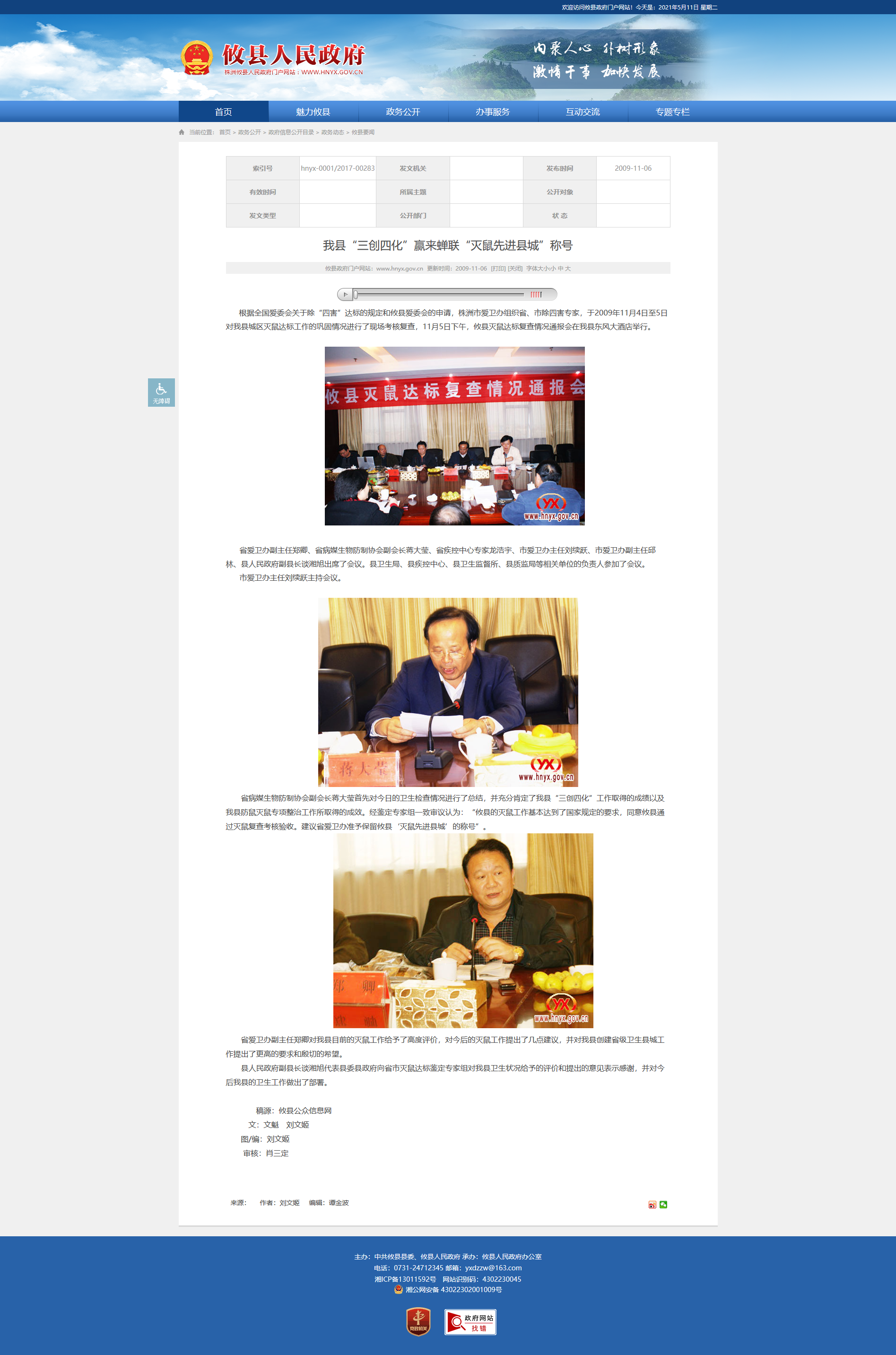 省病媒生物防制协会副会长蒋大莹首先对今日的卫生检查情况进行了总结,并充分肯定了我县“三创四化”工作取得的成绩以及我县防鼠灭鼠专项整治工作所取得的成效。经鉴定专家组一致审议认为:“攸县的灭鼠工作基本达到了国家规定的要求,同意攸县通过灭鼠复查考核验收。建议省爱卫办准予保留攸县‘灭鼠先进县城’的称号”。