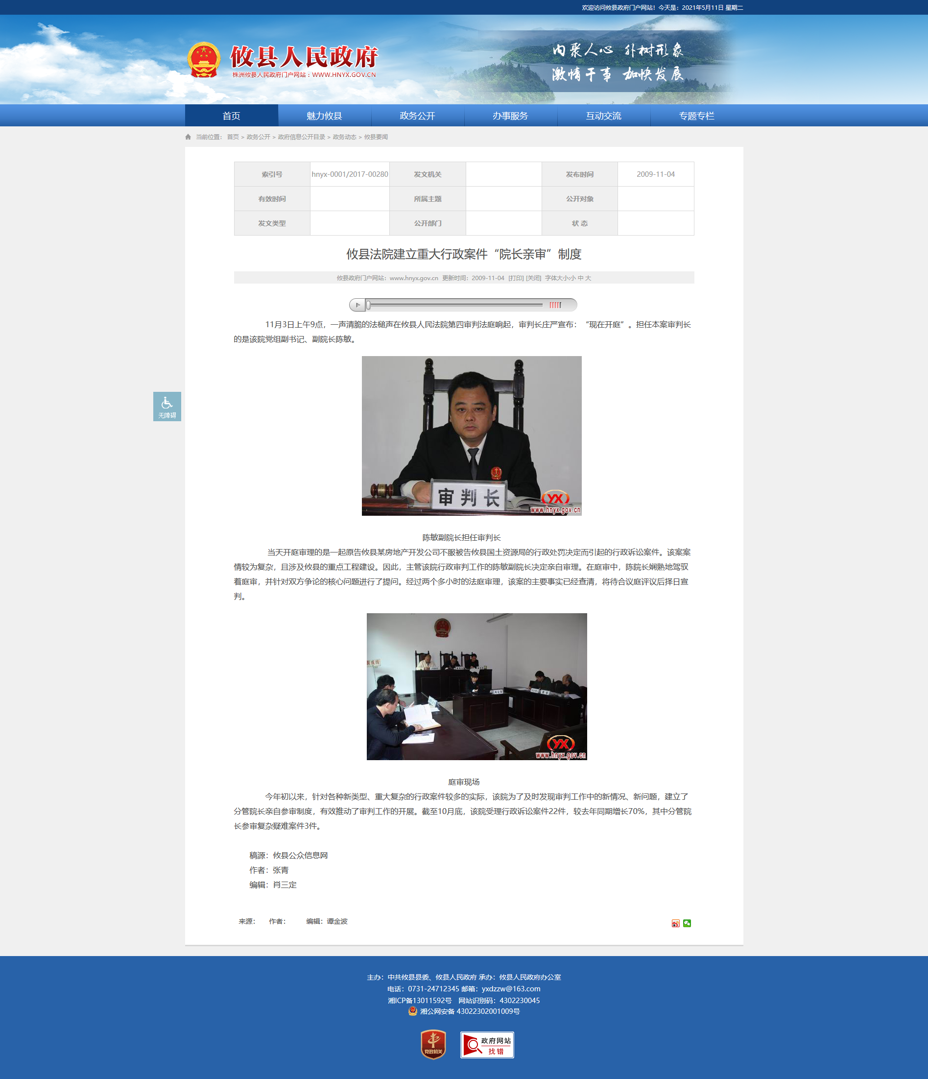 11月3日上午9点,一声清脆的法槌声在攸县人民法院第四审判法庭响起,审判长庄严宣布:“现在开庭”。担任本案审判长的是该院党组副书记、副院长陈敏。