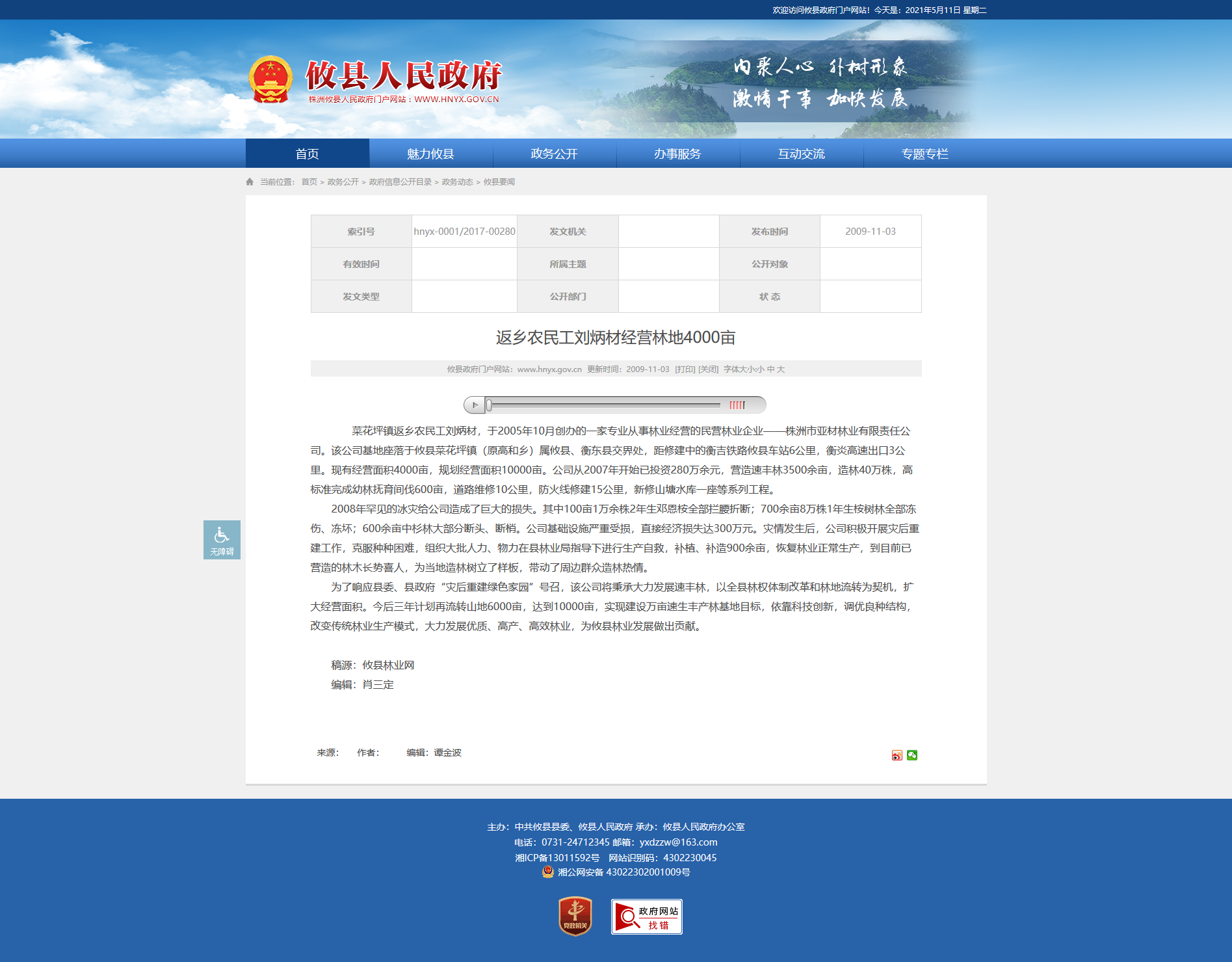 为了响应县委、县政府“灾后重建绿色家园”号召,该公司将秉承大力发展速丰林,以全县林权体制改革和林地流转为契机,扩大经营面积。今后三年计划再流转山地6000亩,达到10000亩,实现建设万亩速生丰产林基地目标,依靠科技创新,调优良种结构,改变传统林业生产模式,大力发展优质、高产、高效林业,为攸县林业发展做出贡献。