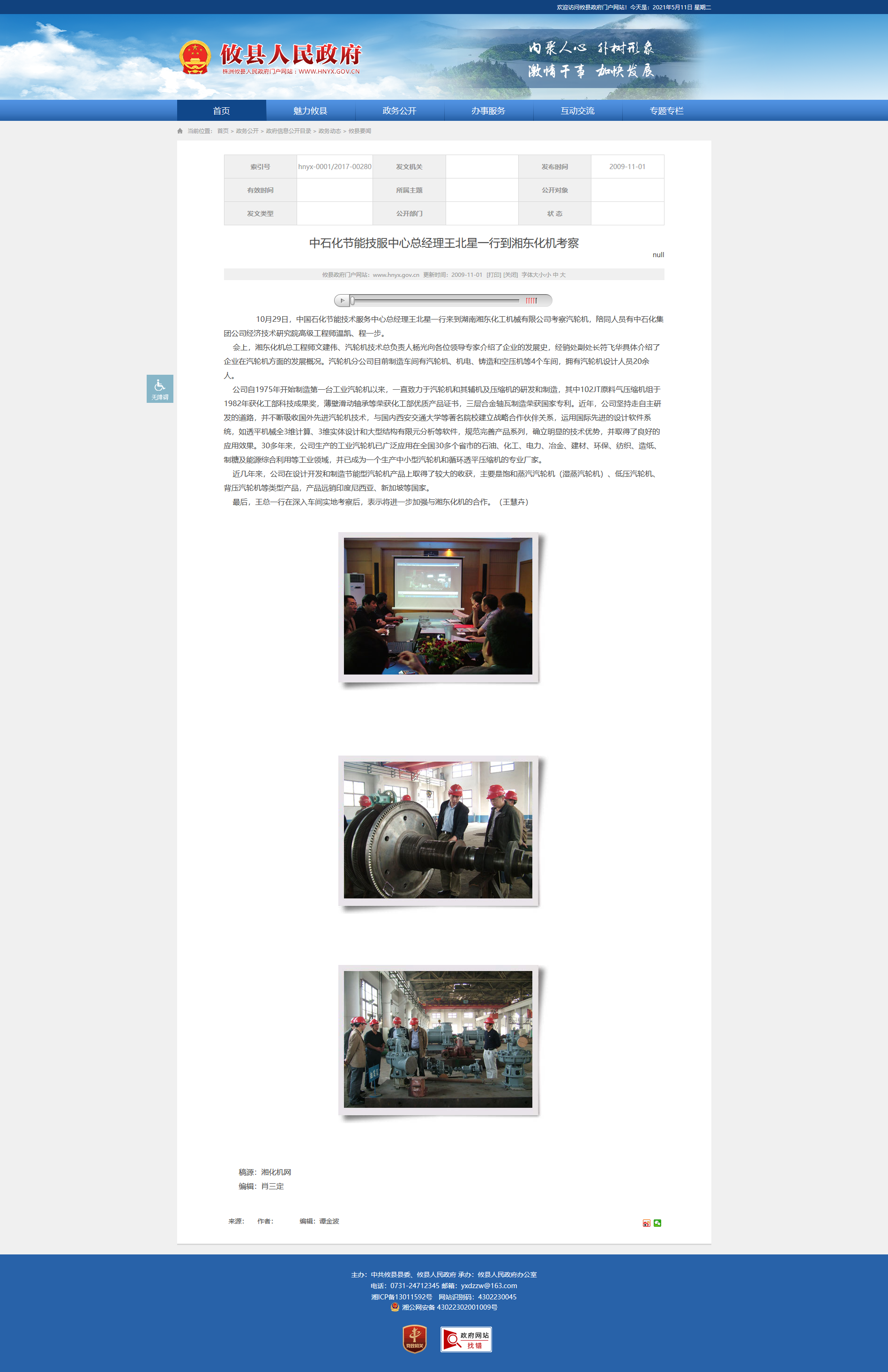 10月29日,中国石化节能技术服务中心总经理王北星一行来到湖南湘东化工机械有限公司考察汽轮机,陪同人员有中石化集团公司经济技术研究院高级工程师温凯、程一步。