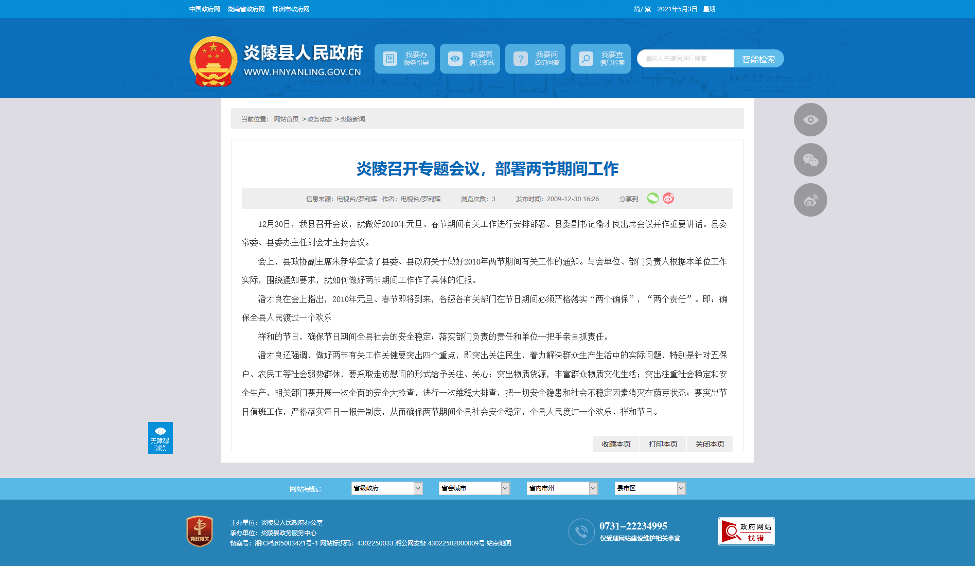 潘才良在会上指出,2010年元旦、春节即将到来,各级各有关部门在节日期间必须严格落实“两个确保”,“两个责任”。即:确保全县人民渡过一个欢乐