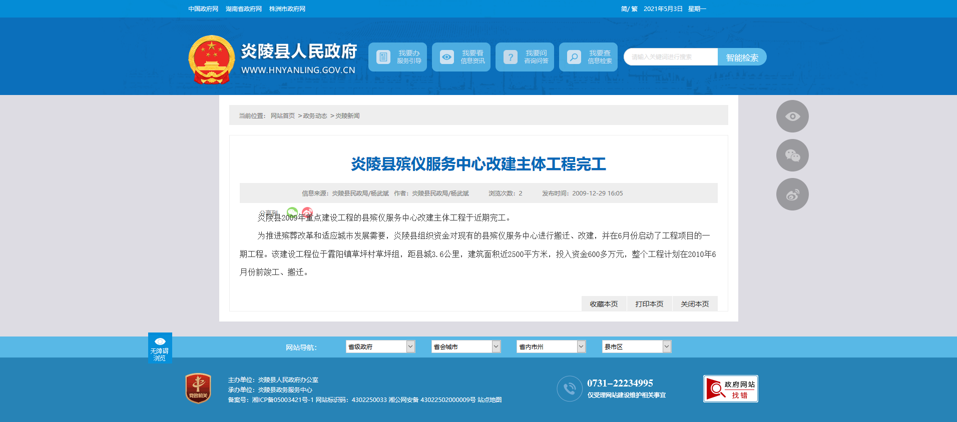 炎陵县2009年重点建设工程的县殡仪服务中心改建主体工程于近期完工。