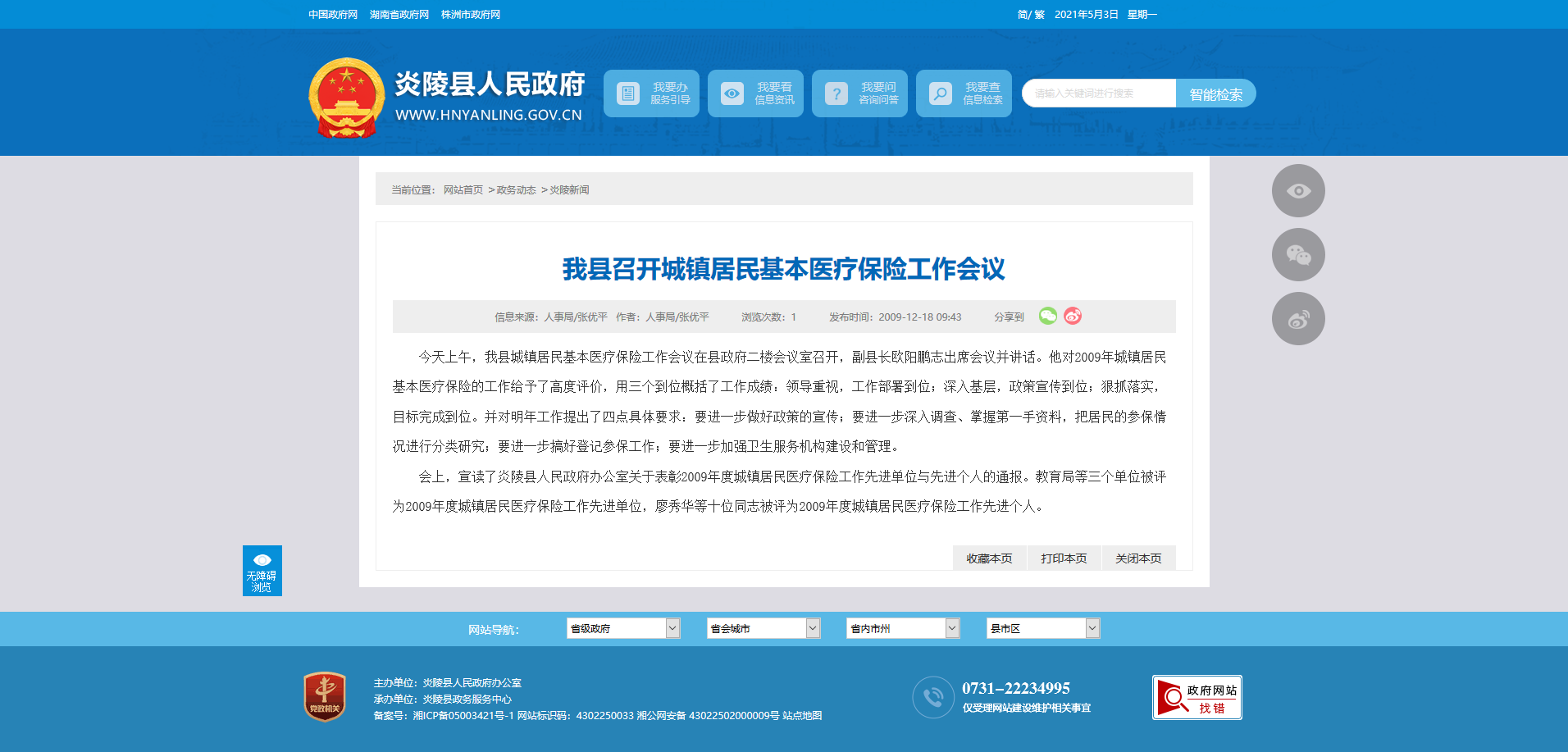 会上,宣读了炎陵县人民政府办公室关于表彰2009年度城镇居民医疗保险工作先进单位与先进个人的通报。教育局等三个单位被评为2009年度城镇居民医疗保险工作先进单位,廖秀华等十位同志被评为2009年度城镇居民医疗保险工作先进个人。