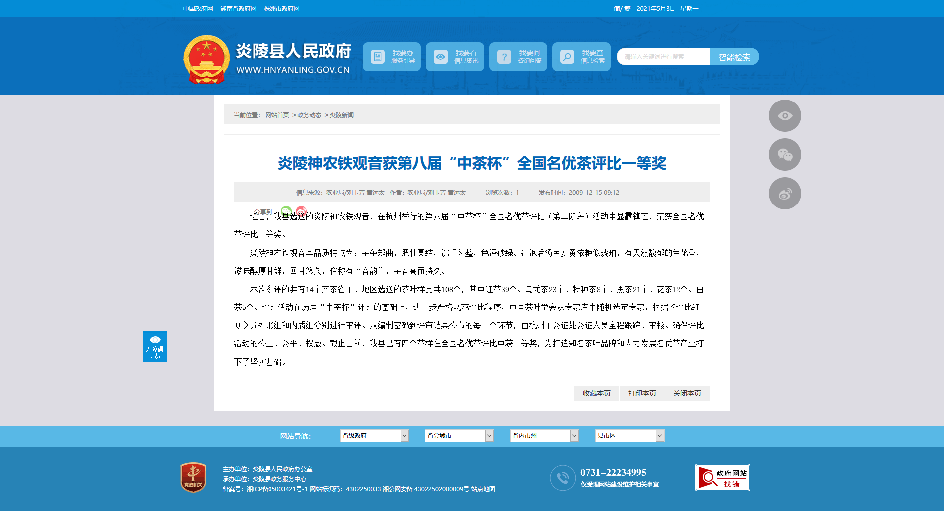 近日,我县选送的炎陵神农铁观音,在杭州举行的第八届“中茶杯”全国名优茶评比(第二阶段)活动中显露锋芒,荣获全国名优茶评比一等奖。