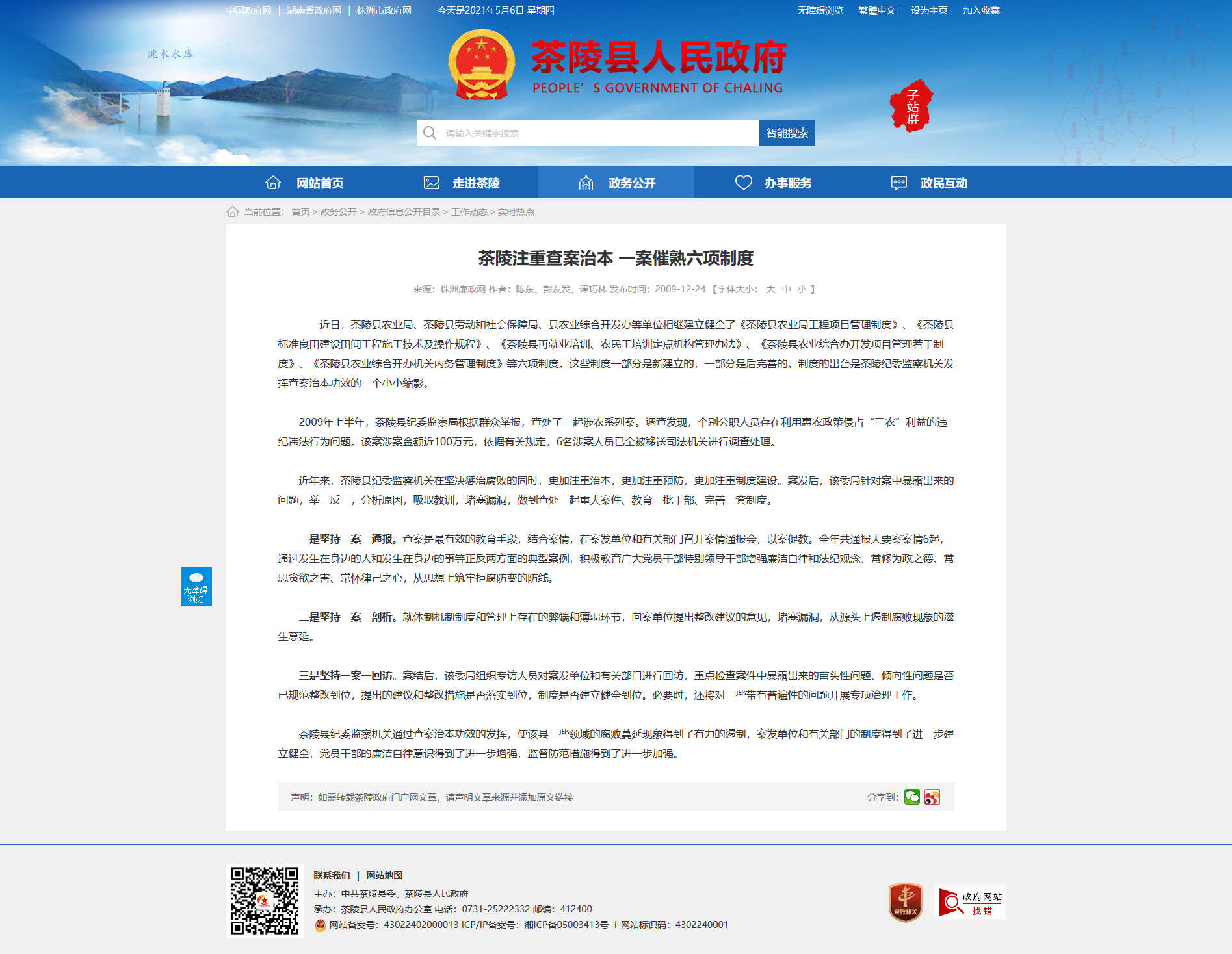 近年来,茶陵县纪委监察机关在坚决惩治腐败的同时,更加注重治本,更加注重预防,更加注重制度建设。案发后,该委局针对案中暴露出来的问题,举一反三,分析原因,吸取教训,堵塞漏洞,做到查处一起重大案件、教育一批干部、完善一套制度。