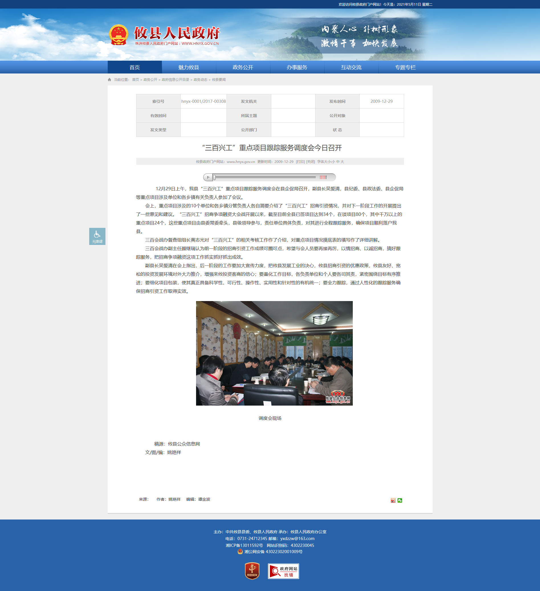 副县长吴爱清在会上指出,后一阶段的工作要加大宣传力度,把攸县发展工业的决心,攸县招商引资的优惠政策,攸县友好、宽松的投资发展环境对外大力推介,增强来攸投资客商的信心;要量化工作目标,各负责单位和个人要各司其责,紧密围绕目标有序推进;要细化项目包装,使其真正具备科学性、可行性、操作性、实用性和针对性的有机统一;要全力跟踪,通过人性化的跟踪服务确保招商引资工作取得实效。