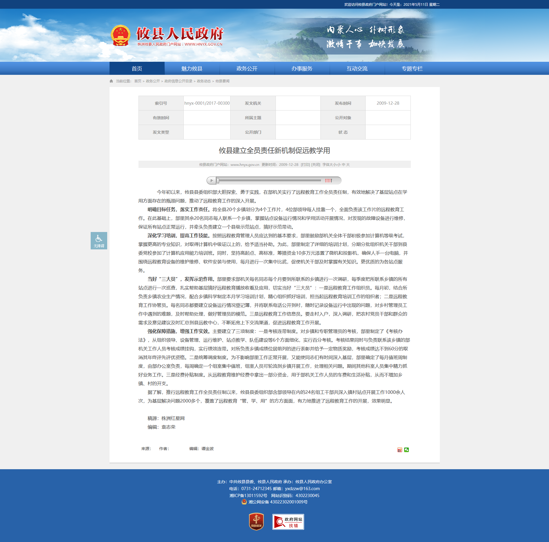 明确目标任务,落实工作责任。将全县20个乡镇划分为4个工作片,4位部领导每人挂靠一个,全面负责该工作片的远程教育工作。在此基础上,部里其余20名同志每人联系一个乡镇,掌握站点设备运行情况和学用活动开展情况,对发现的故障设备进行维修,保证所有站点正常运行,并牵头负责建立一个县级示范站点,搞好示范带动。