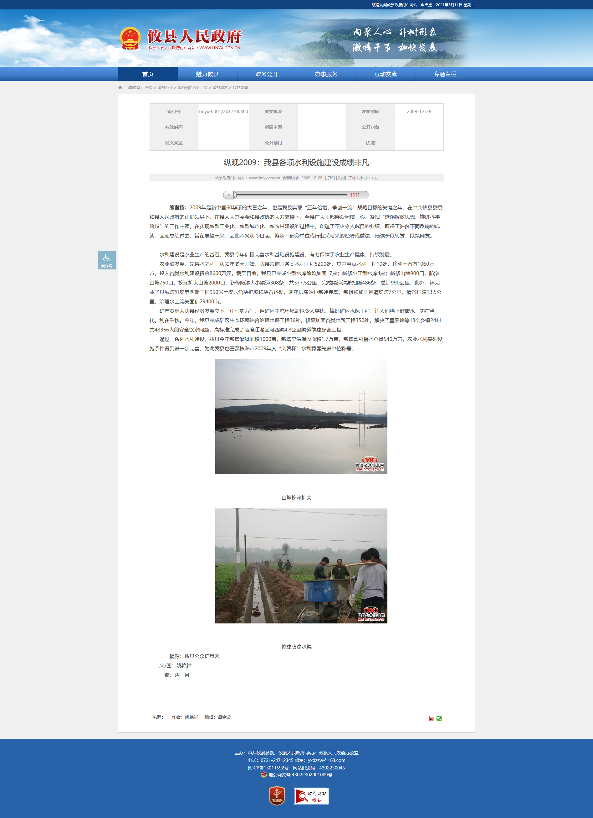 通过一系列水利建设,我县今年新增灌溉面积1000亩,新增旱涝保收面积1.7万亩,新增蓄引提水总量540万方,农业水利基础设施条件得到进一步完善,为此我县也喜获株洲市2009年度“芙蓉杯”水利竞赛先进单位称号。