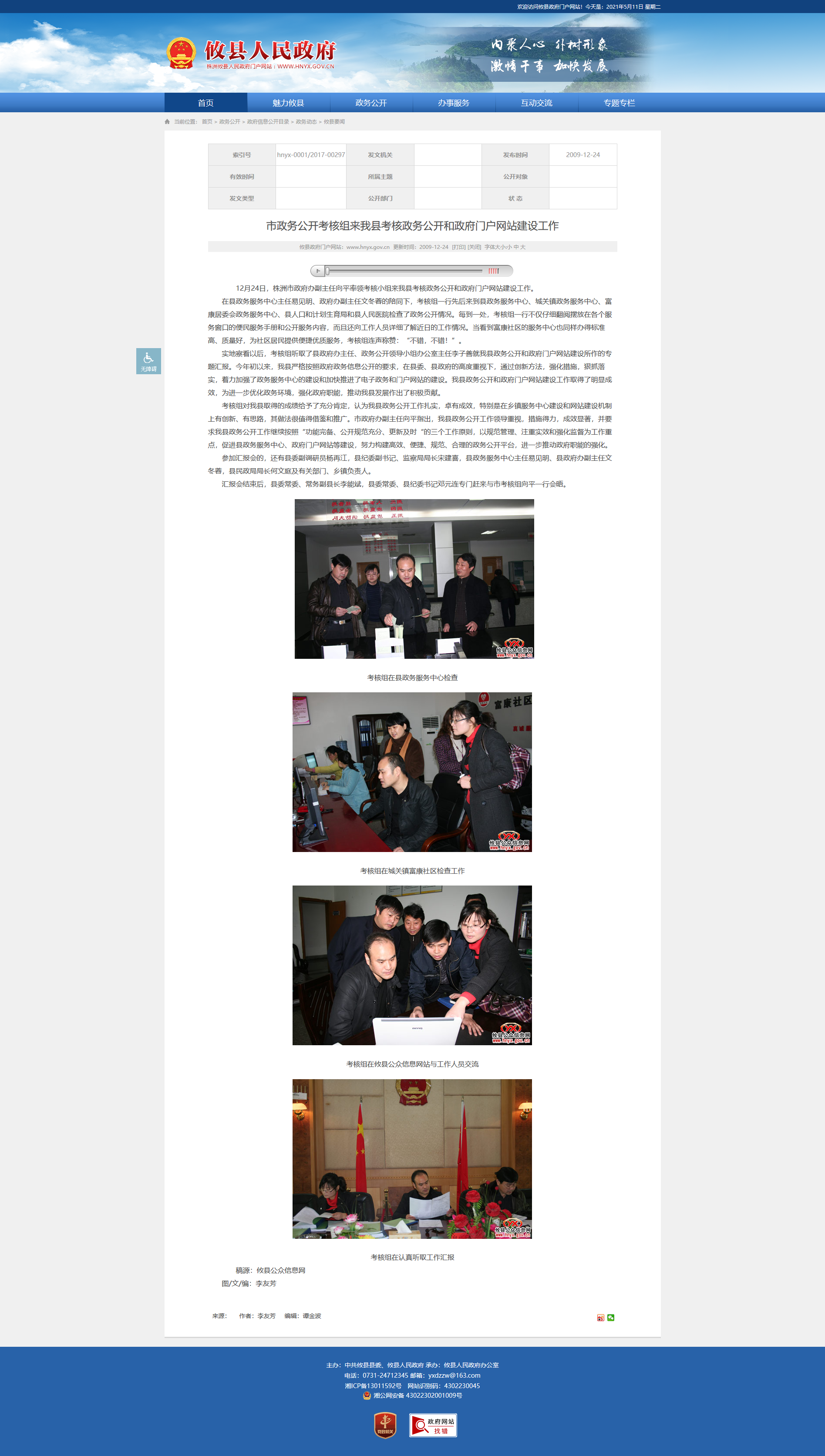 12月24日,株洲市政府办副主任向平率领考核小组来我县考核政务公开和政府门户网站建设工作。