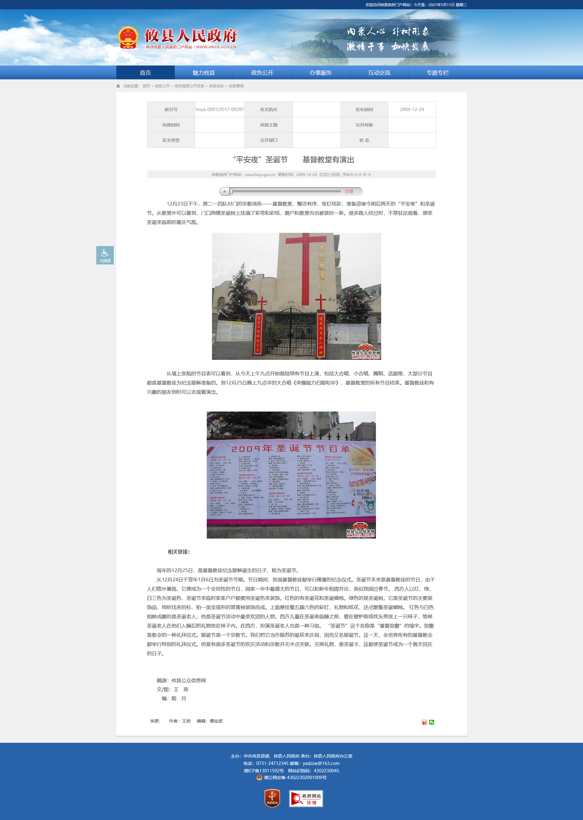 12月23日下午,原二一四队对门的宗教场所——基督教堂,整洁有序,张灯结彩,准备迎接今明后两天的“平安夜”和圣诞节。从教堂外可以看到,门口两棵圣诞树上挂满了彩带和彩纸,窗户和教堂内也被装扮一新。很多路人经过时,不禁驻足观看,感受圣诞来临前的喜庆气氛。