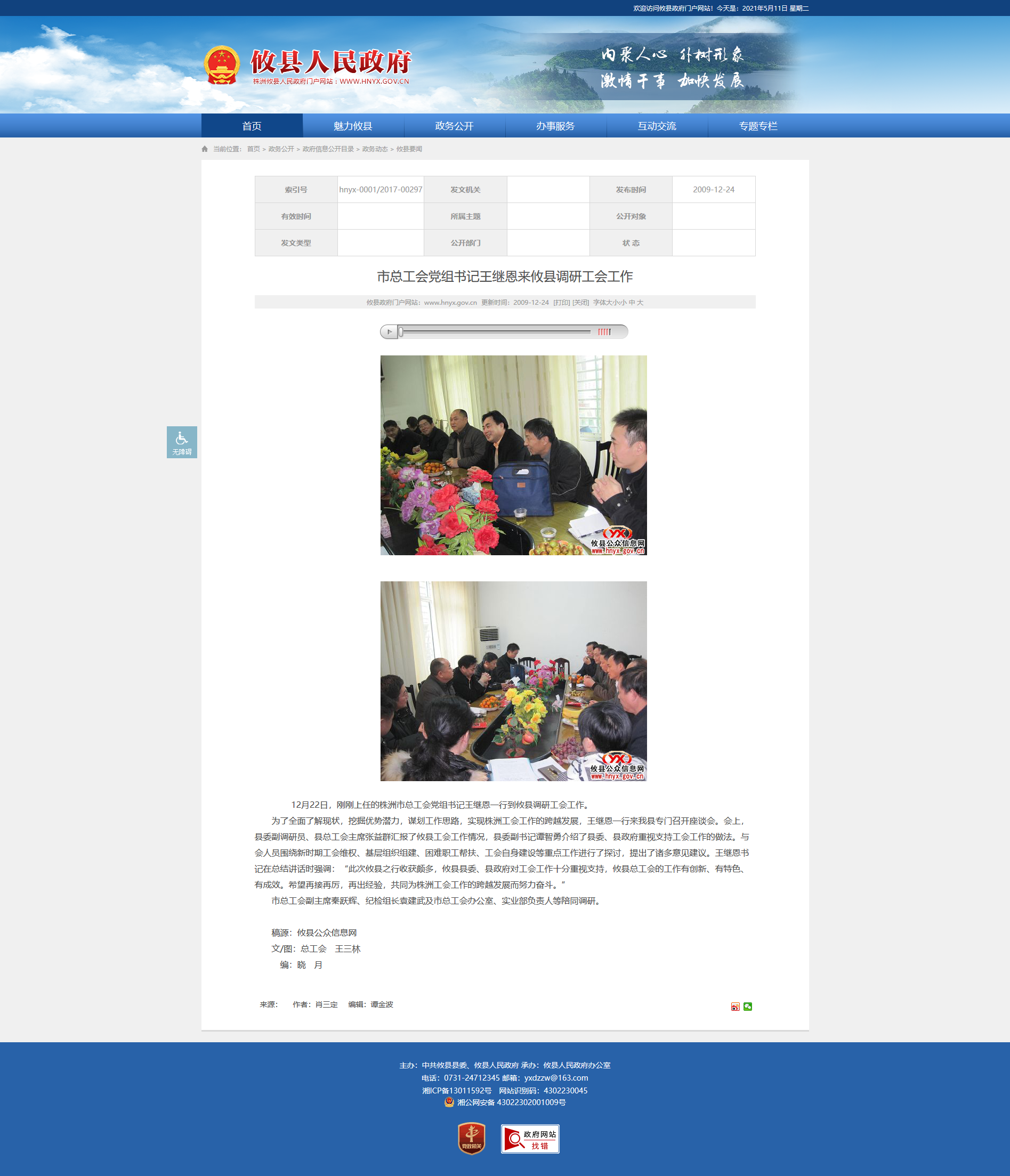 12月22日,刚刚上任的株洲市总工会党组书记王继恩一行到攸县调研工会工作。