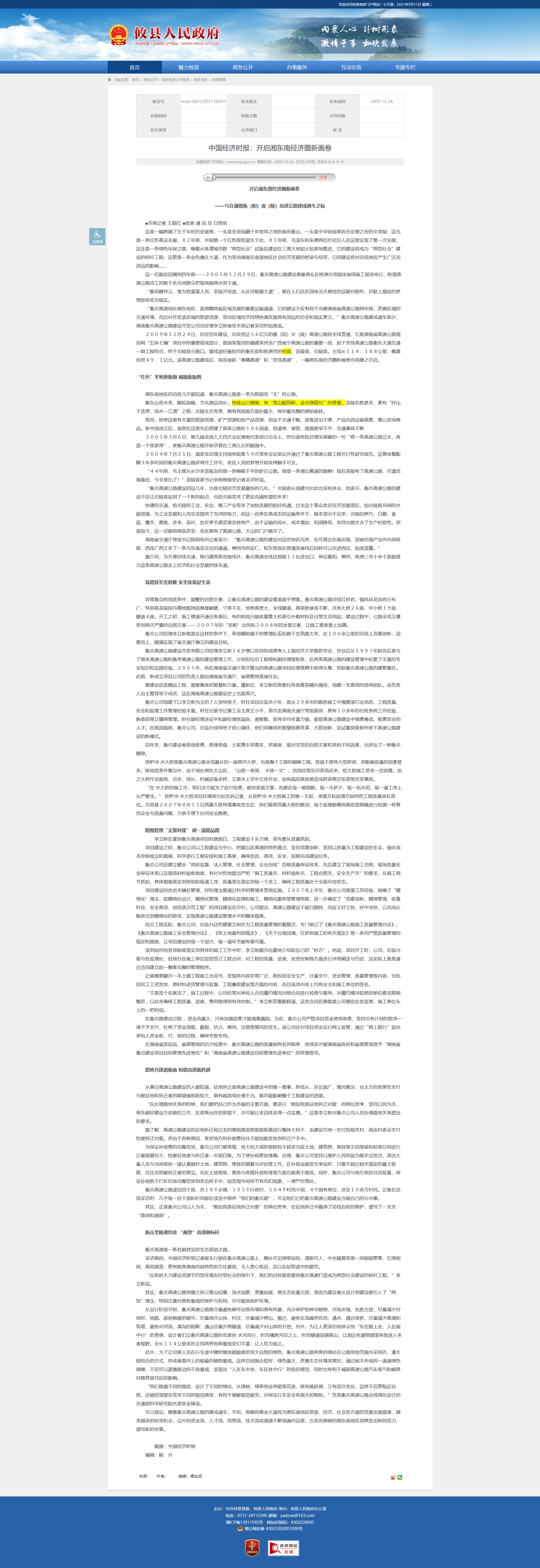 ——写在湖南衡(阳)炎(陵)高速公路建成通车之际