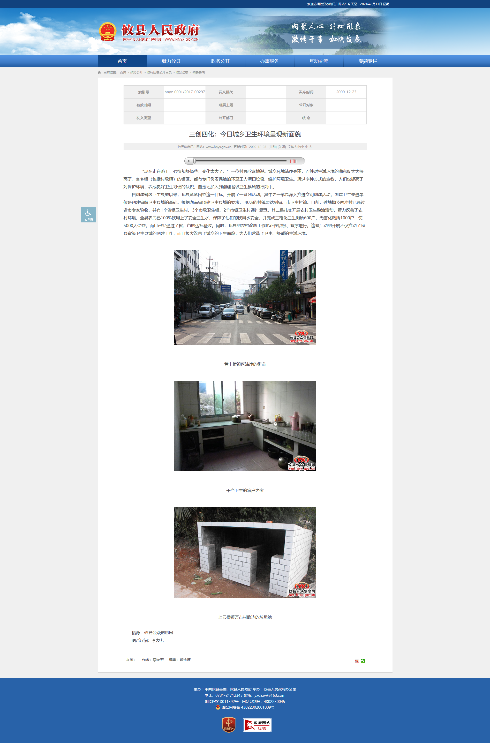 “现在走在路上,心情都舒畅些,变化太大了。”一位村民欣喜地说。城乡环境洁净亮丽,百姓对生活环境的满意度大大提高了。各乡镇(包括村级镇)的镇区,都有专门负责保洁的环卫工人清扫垃圾、维护环境卫生。通过多种方式的宣教,人们也提高了对保护环境、养成良好卫生习惯的认识,自觉地加入到创建省级卫生县城的行列中。