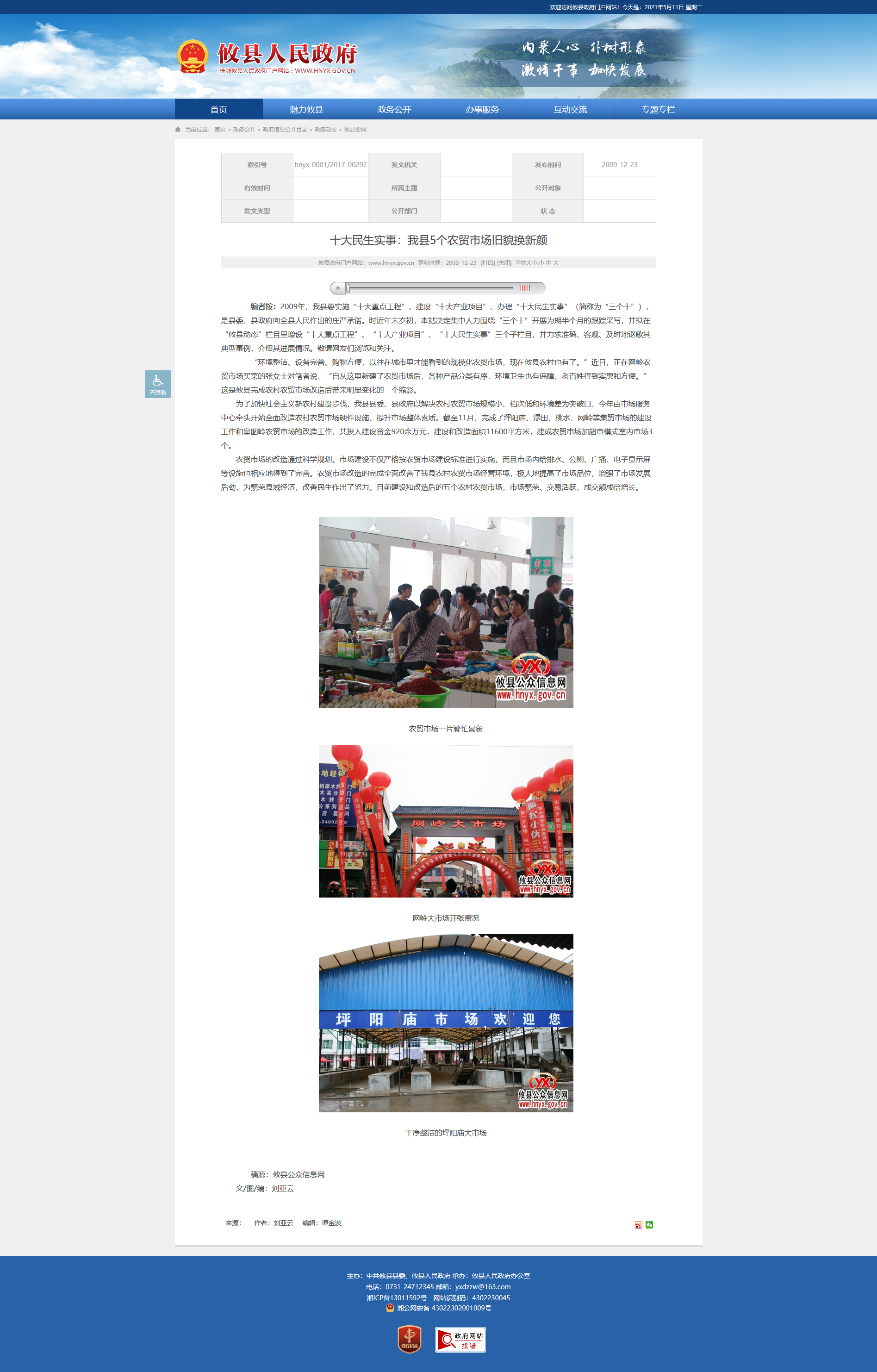 为了加快社会主义新农村建设步伐,我县县委、县政府以解决农村农贸市场规模小、档次低和环境差为突破口,今年由市场服务中心牵头开始全面改造农村农贸市场硬件设施,提升市场整体素质。截至11月,完成了坪阳庙、渌田、桃水、网岭等集贸市场的建设工作和皇图岭农贸市场的改造工作,共投入建设资金920余万元,建设和改造面积11600平方米,建成农贸市场加超市模式室内市场3个。