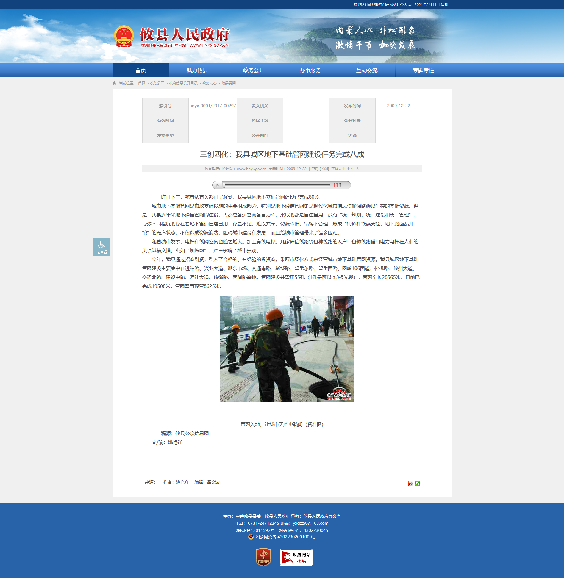 今年,我县通过招商引资,引入了合格的、有经验的投资商,采取市场化方式来经营城市地下基础管网资源。我县城区地下基础管网建设主要集中在进站路、兴业大道、湘东市场、交通南路、新城路、望岳东路、望岳西路、网岭106国道、化机路、攸州大道、交通北路、建设中路、滨江大道、攸衡路、西阁路等地。管网建设共需用55孔(1孔是可以穿3根光缆),管网全长28565米,目前已完成19508米,管网需用顶管8625米。