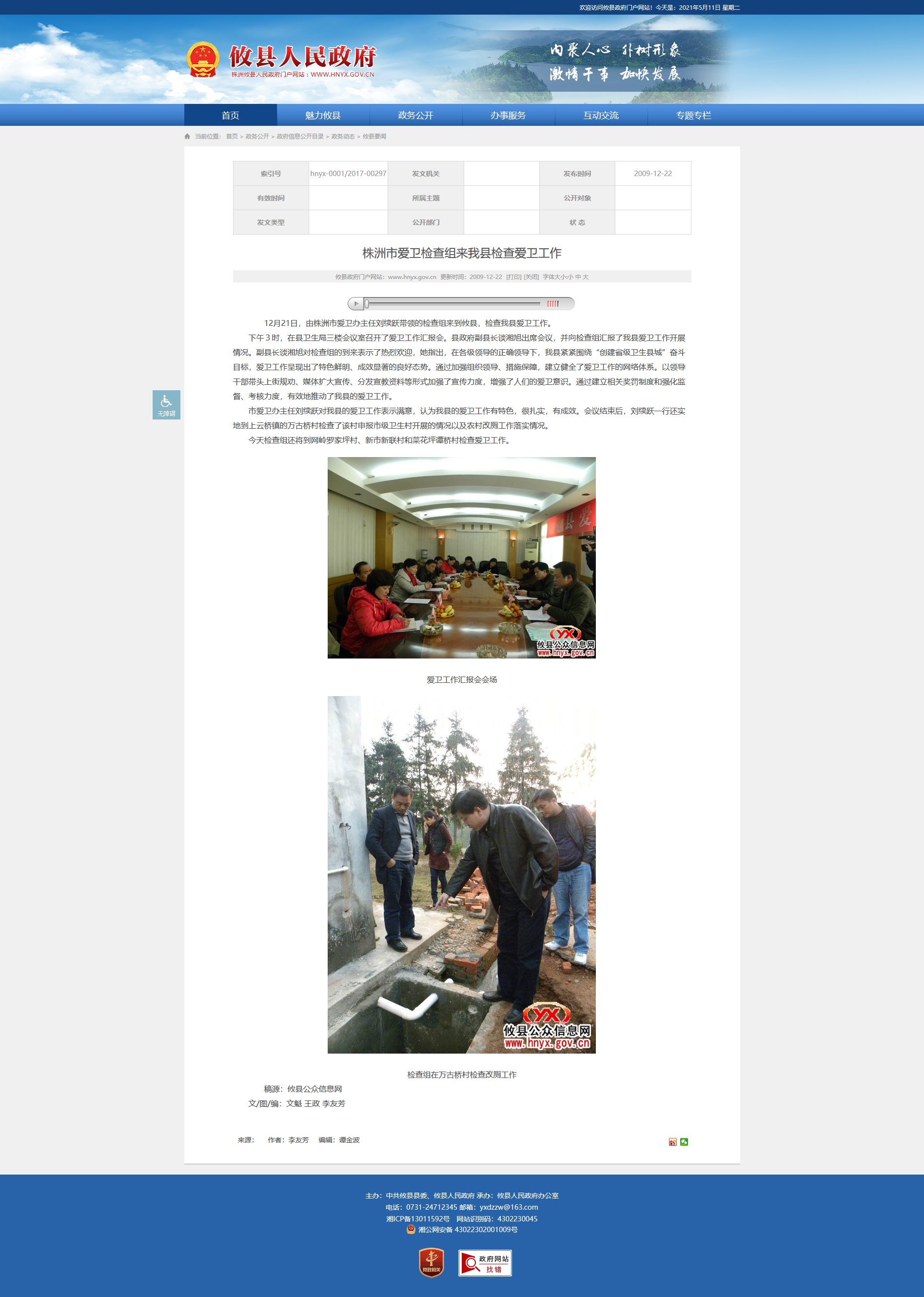 12月21日,由株洲市爱卫办主任刘续跃带领的检查组来到攸县,检查我县爱卫工作。