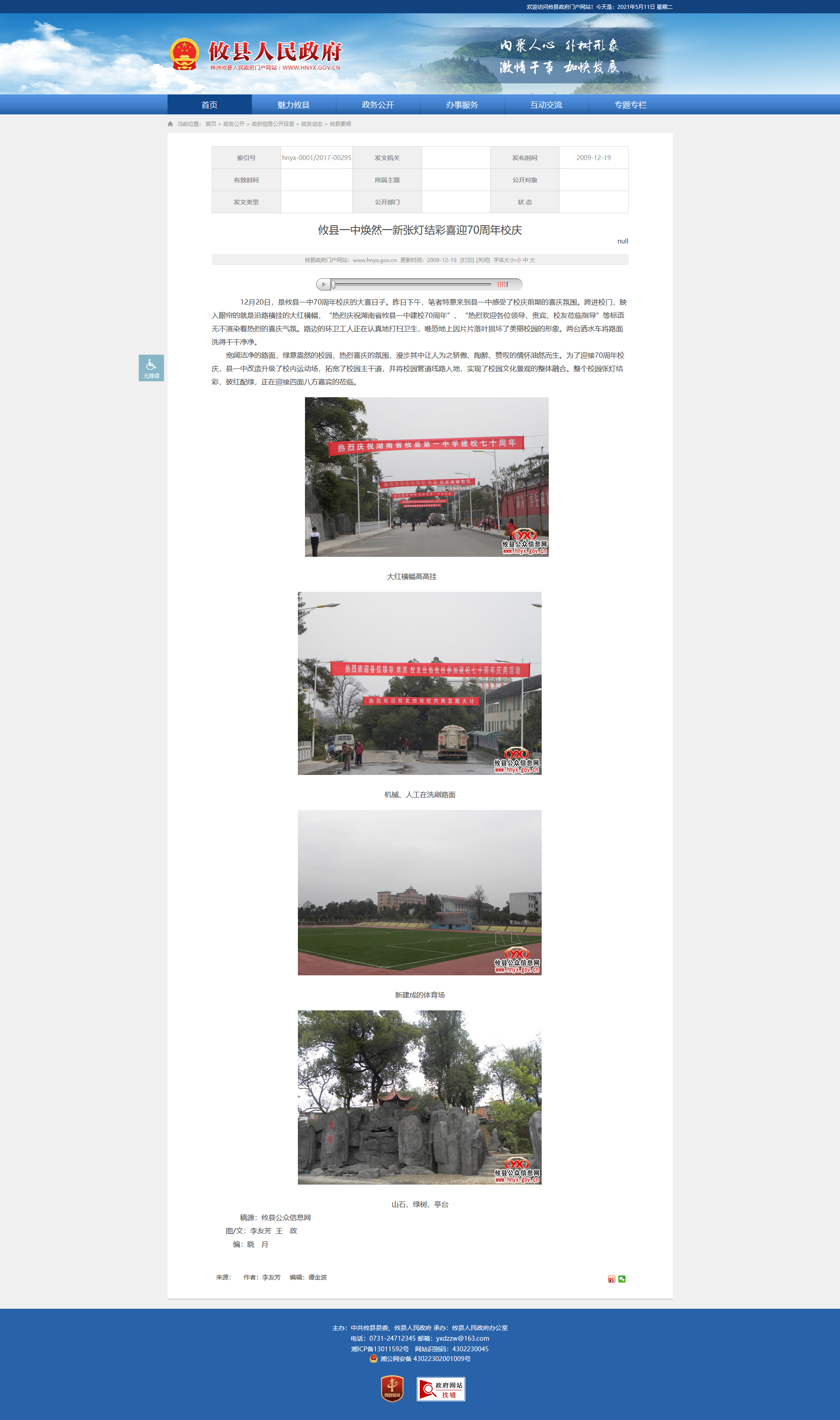 宽阔洁净的路面,绿意盎然的校园,热烈喜庆的氛围,漫步其中让人为之骄傲、陶醉、赞叹的情怀油然而生。为了迎接70周年校庆,县一中改造升级了校内运动场,拓宽了校园主干道,并将校园管道线路入地,实现了校园文化景观的整体融合。整个校园张灯结彩,披红配绿,正在迎接四面八方嘉宾的莅临。