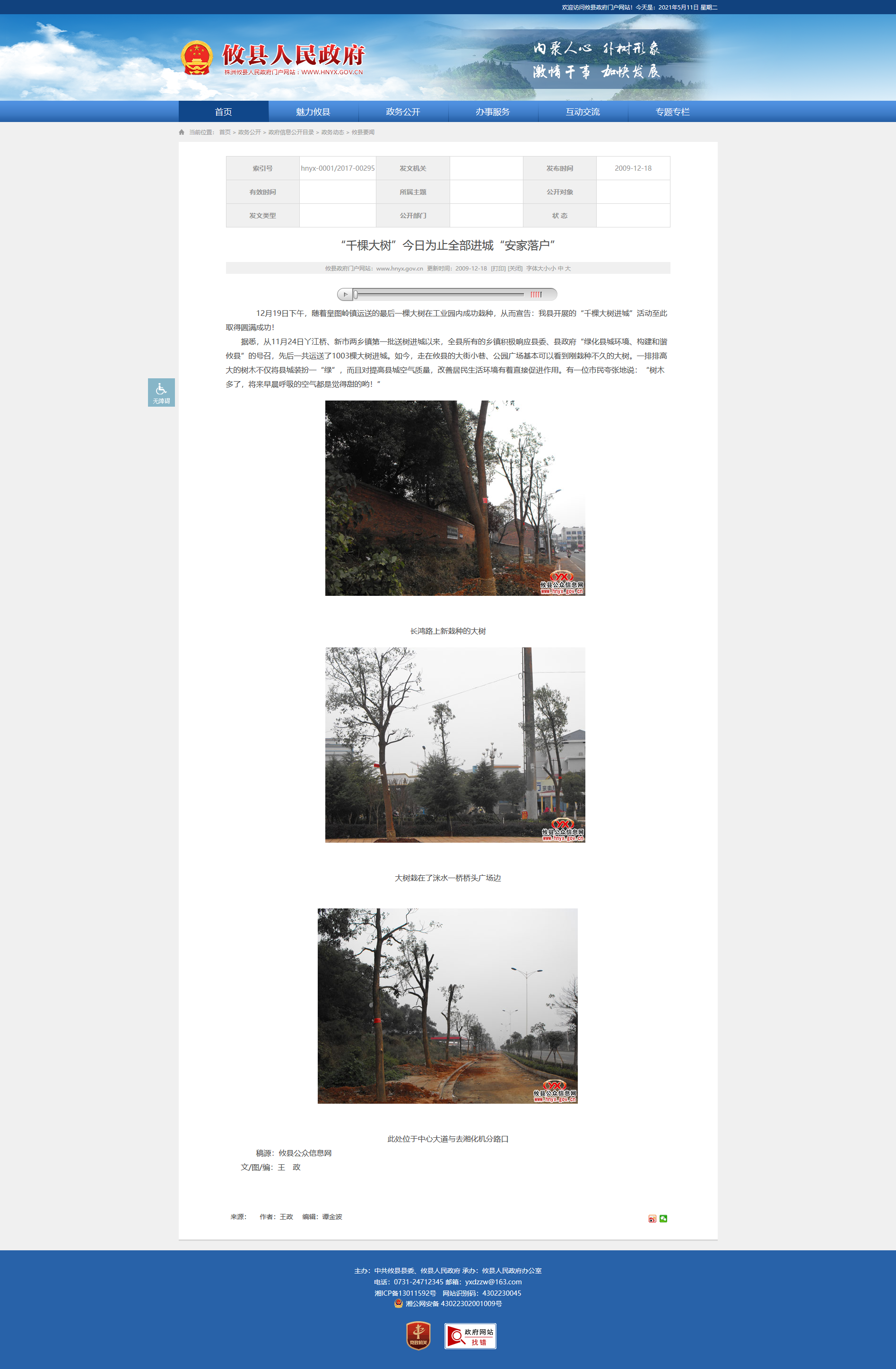 据悉,从11月24日丫江桥、新市两乡镇第一批送树进城以来,全县所有的乡镇积极响应县委、县政府“绿化县城环境、构建和谐攸县”的号召,先后一共运送了1003棵大树进城。如今,走在攸县的大街小巷、公园广场基本可以看到刚栽种不久的大树。一排排高大的树木不仅将县城装扮一“绿”,而且对提高县城空气质量,改善居民生活环境有着直接促进作用。有一位市民夸张地说:“树木多了,将来早晨呼吸的空气都是觉得甜的哟!”