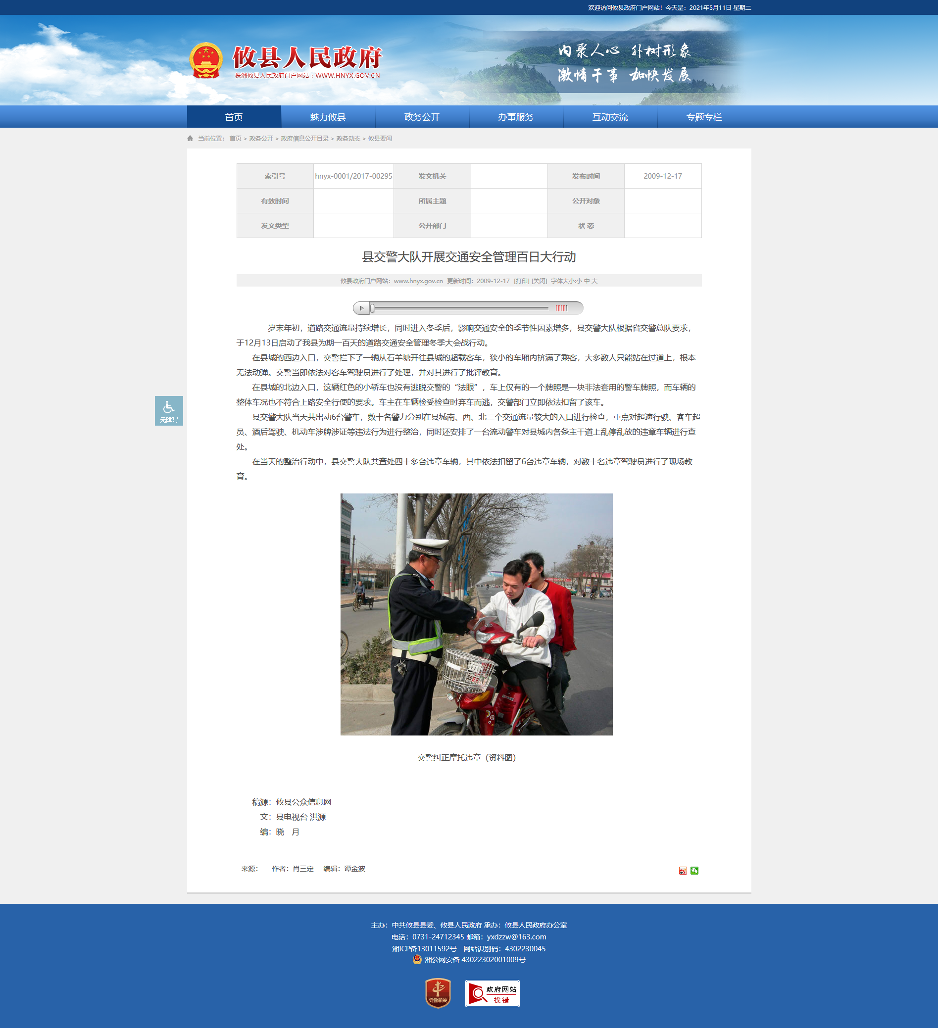 岁末年初,道路交通流量持续增长,同时进入冬季后,影响交通安全的季节性因素增多,县交警大队根据省交警总队要求,于12月13日启动了我县为期一百天的道路交通安全管理冬季大会战行动。
