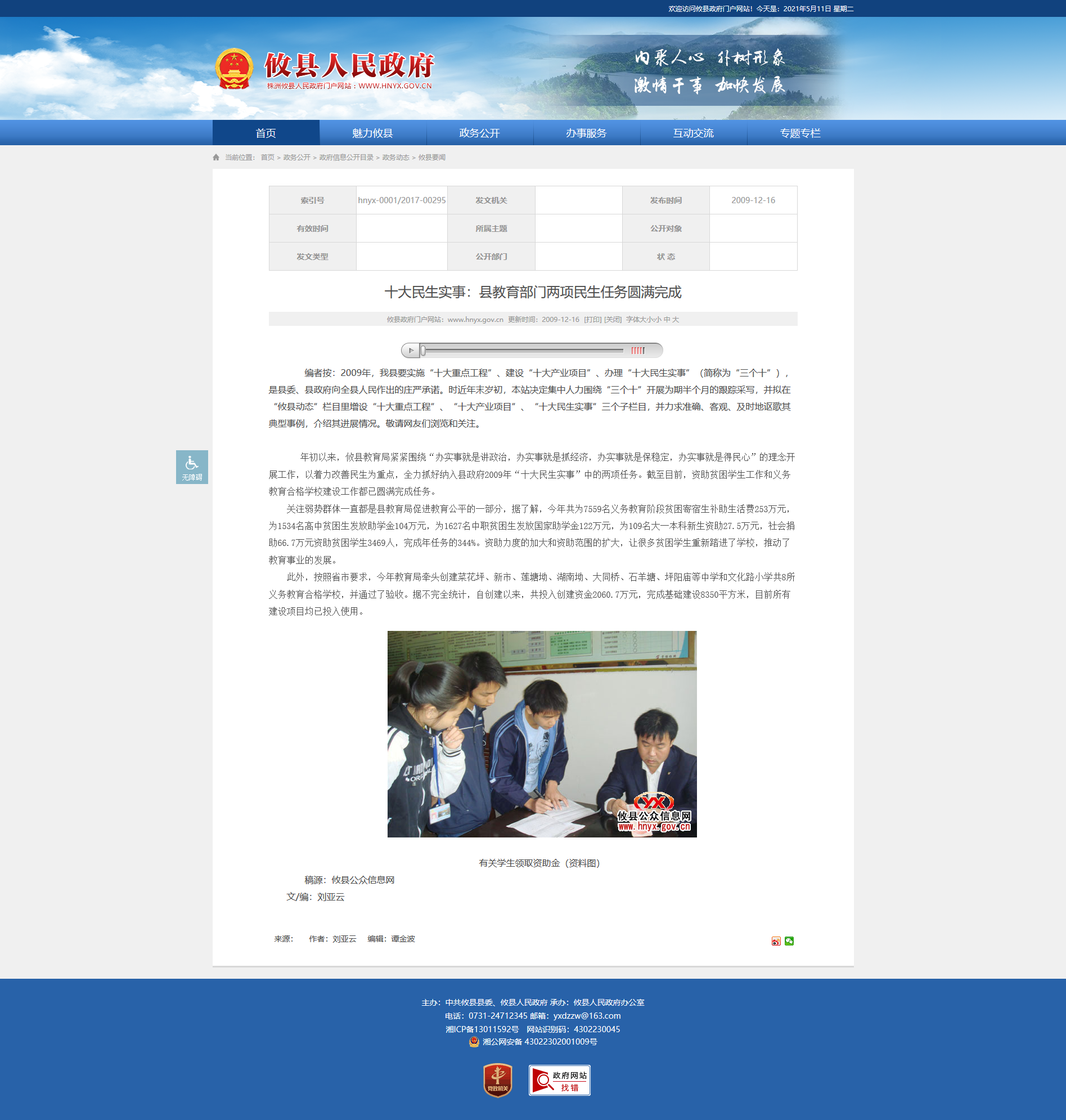 年初以来,攸县教育局紧紧围绕“办实事就是讲政治,办实事就是抓经济,办实事就是保稳定,办实事就是得民心”的理念开展工作,以着力改善民生为重点,全力抓好纳入县政府2009年“十大民生实事”中的两项任务。截至目前,资助贫困学生工作和义务教育合格学校建设工作都已圆满完成任务。