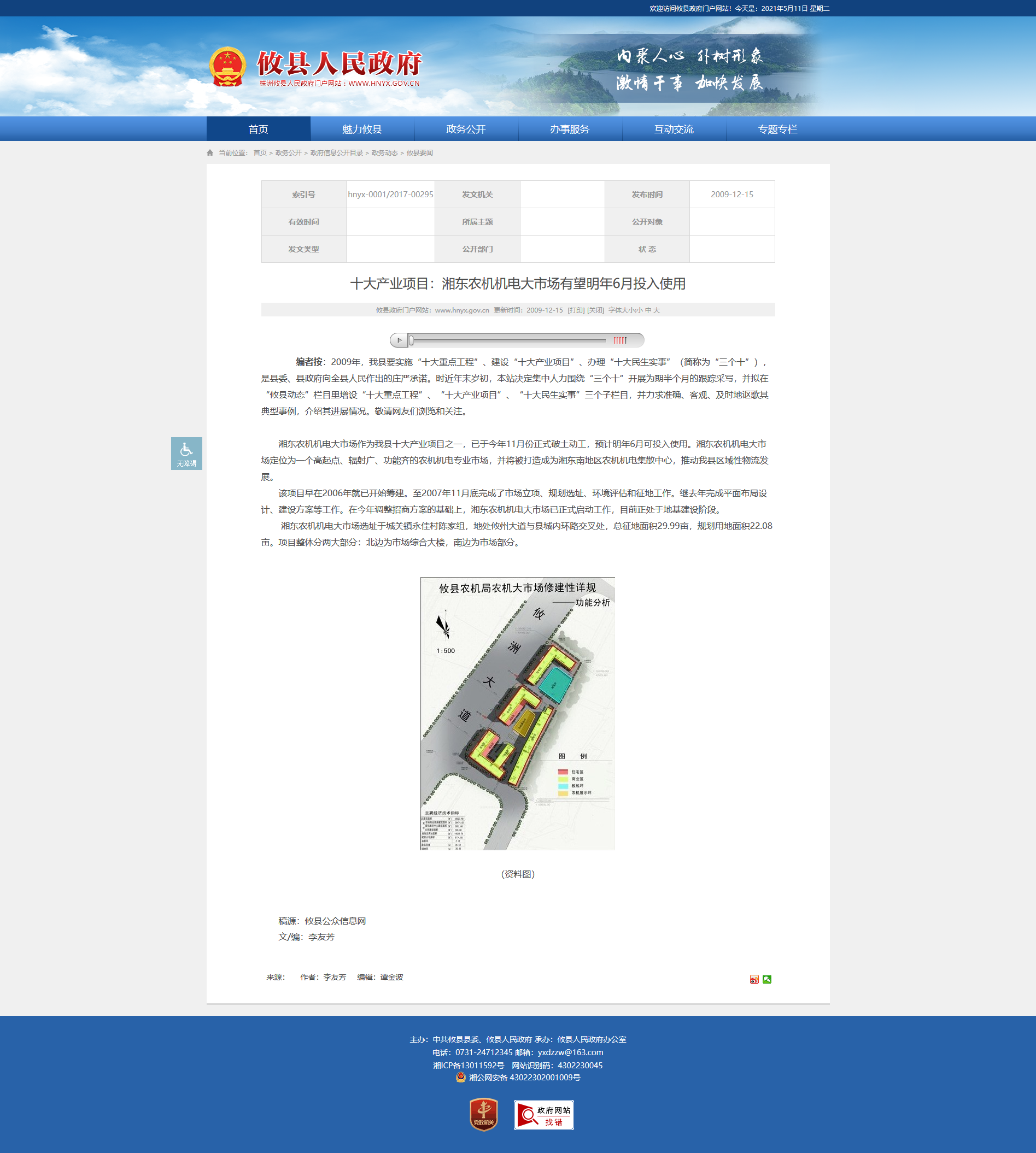 该项目早在2006年就已开始筹建。至2007年11月底完成了市场立项、规划选址、环境评估和征地工作。继去年完成平面布局设计、建设方案等工作。在今年调整招商方案的基础上,湘东农机机电大市场已正式启动工作,目前正处于地基建设阶段。