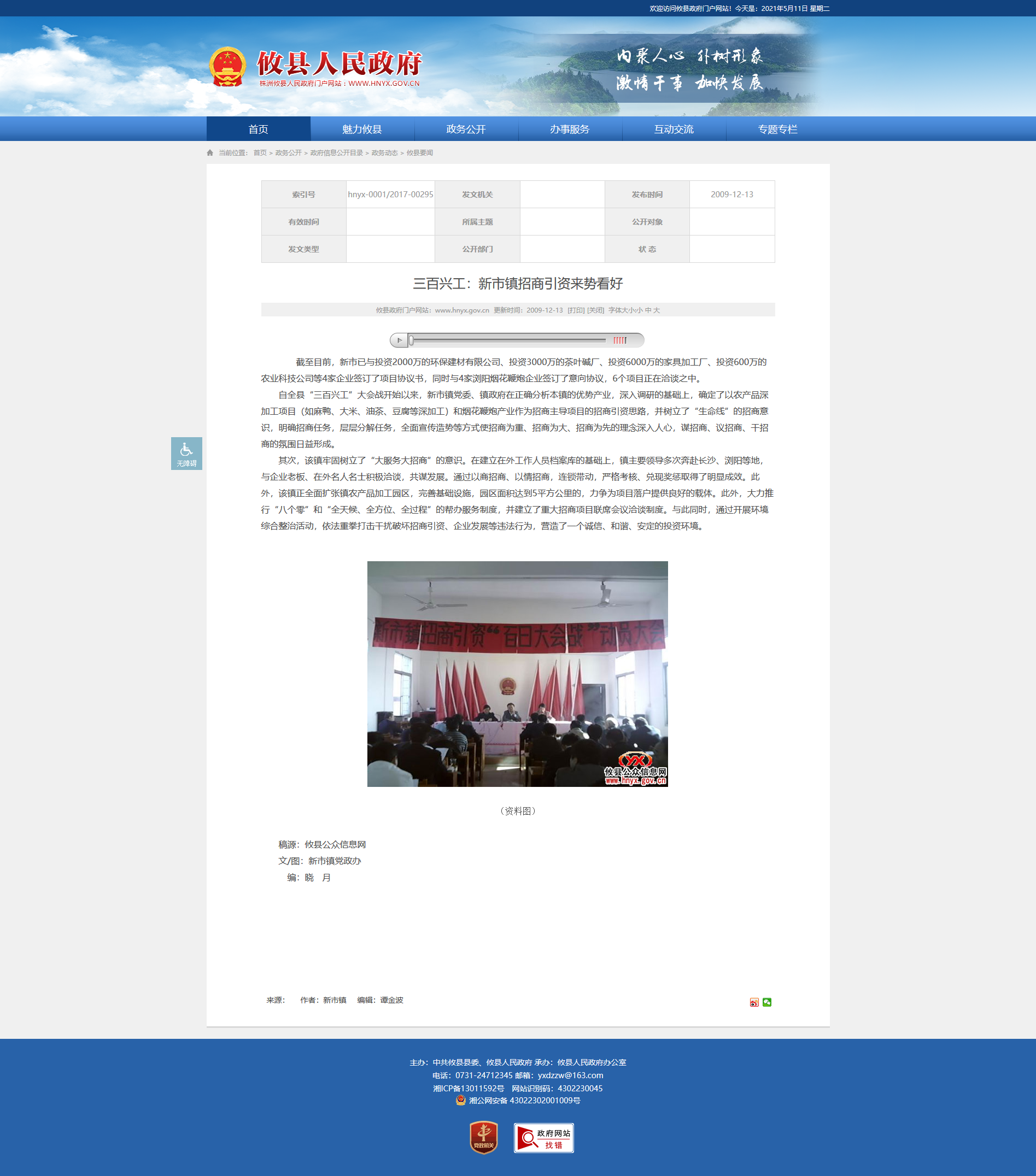 自全县“三百兴工”大会战开始以来,新市镇党委、镇政府在正确分析本镇的优势产业,深入调研的基础上,确定了以农产品深加工项目(如麻鸭、大米、油茶、豆腐等深加工)和烟花鞭炮产业作为招商主导项目的招商引资思路,并树立了“生命线”的招商意识,明确招商任务,层层分解任务,全面宣传造势等方式使招商为重、招商为大、招商为先的理念深入人心,谋招商、议招商、干招商的氛围日益形成。