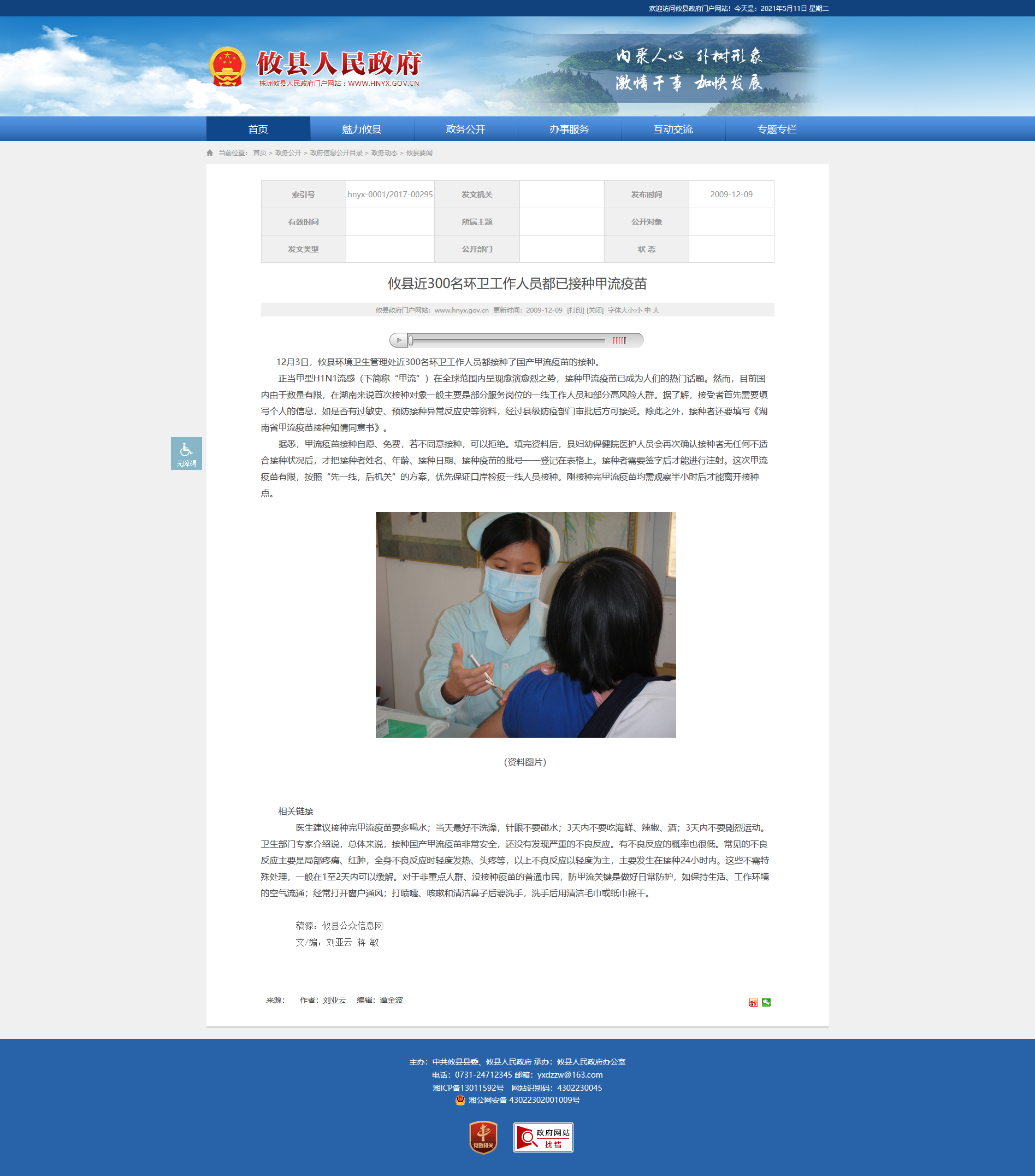 12月3日,攸县环境卫生管理处近300名环卫工作人员都接种了国产甲流疫苗的接种。