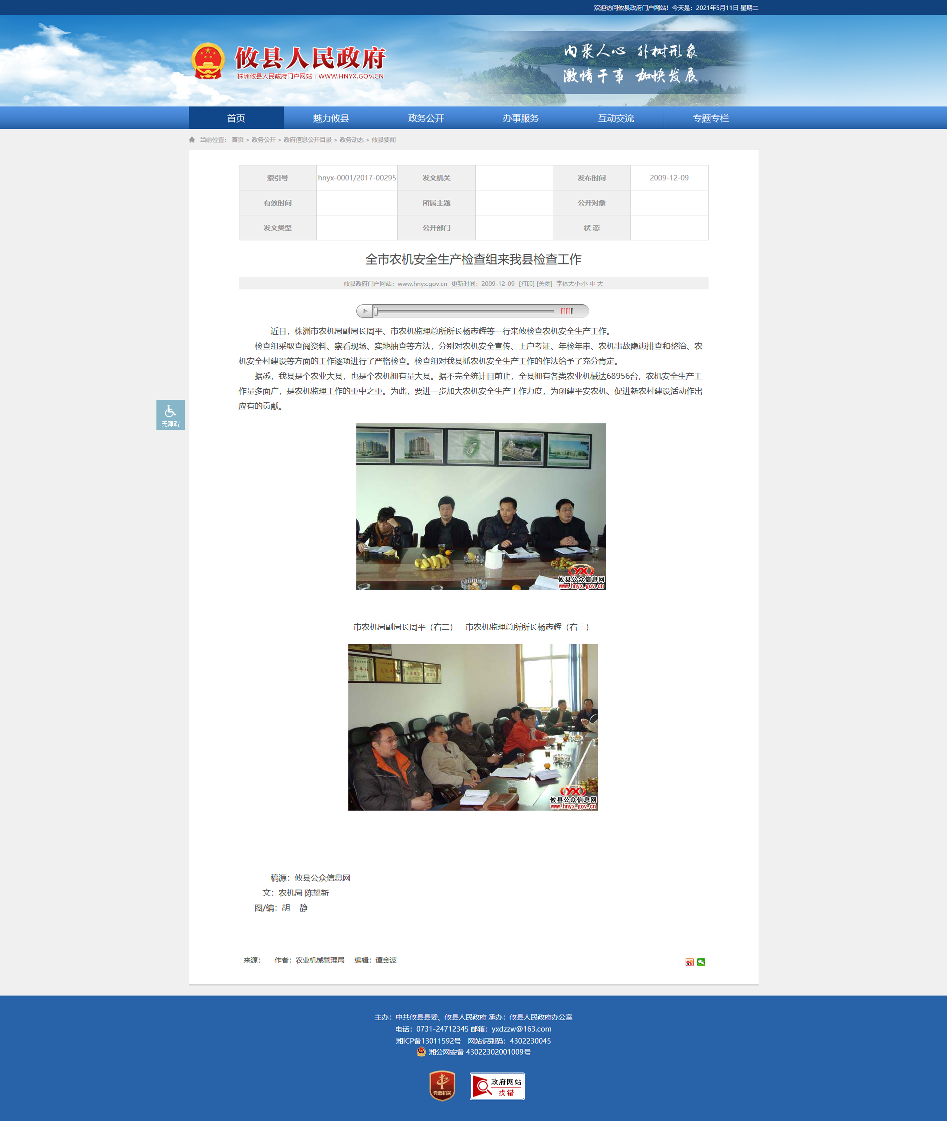 近日,株洲市农机局副局长周平、市农机监理总所所长杨志辉等一行来攸检查农机安全生产工作。