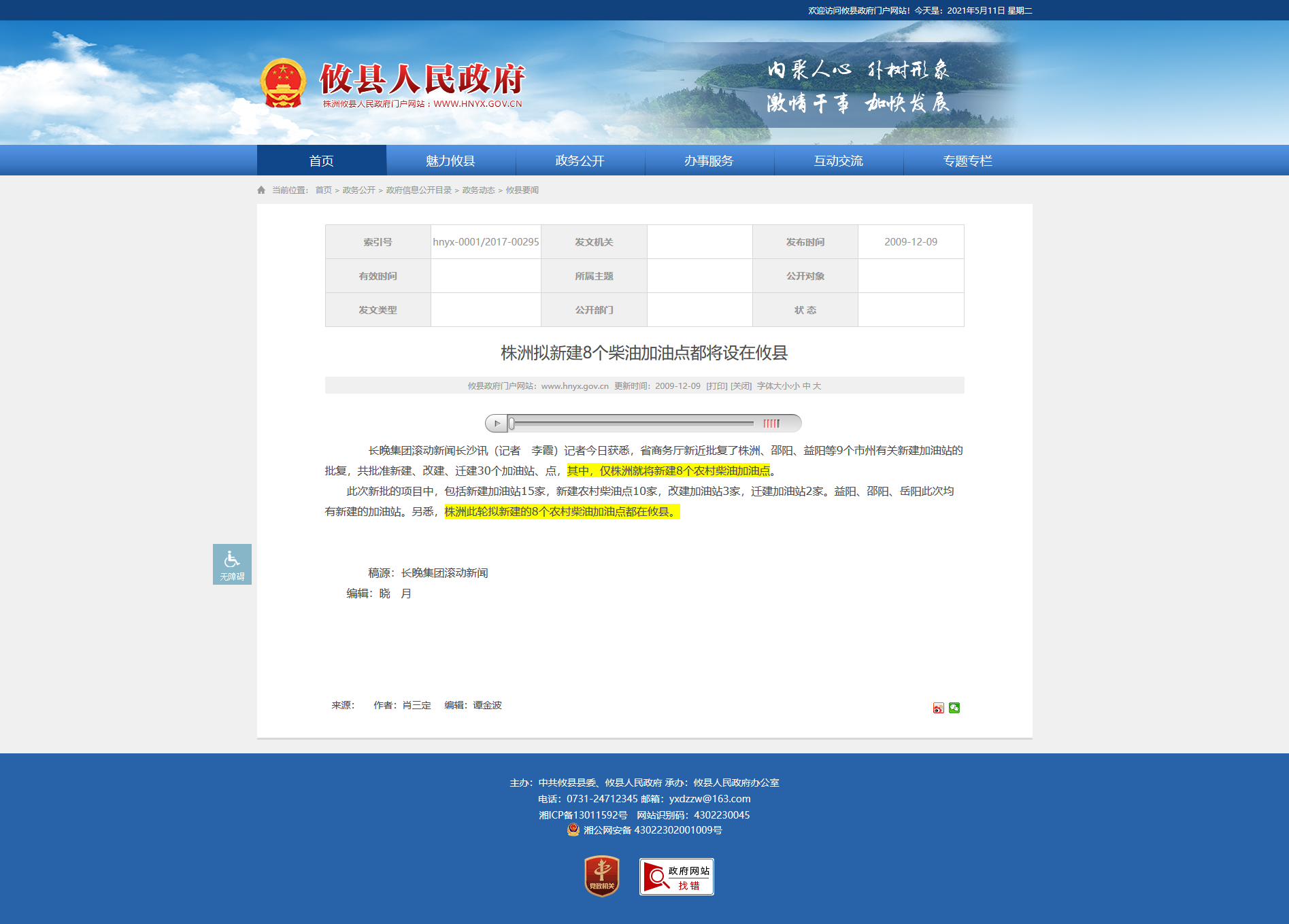 时间:2009-12-09 00:00:00 来源: 攸县人民政府 来源截图