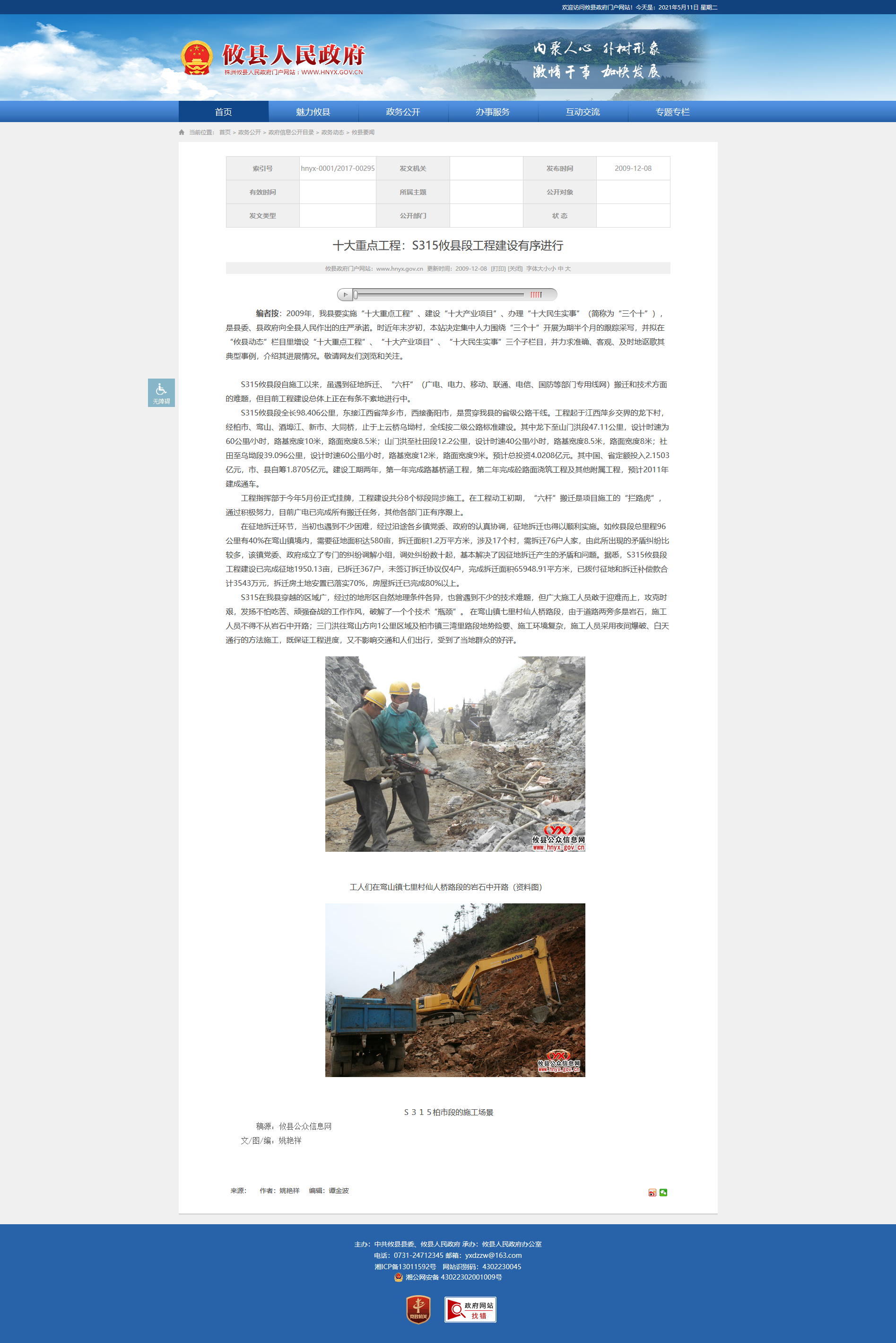 S315在我县穿越的区域广,经过的地形区自然地理条件各异,也曾遇到不少的技术难题,但广大施工人员敢于迎难而上,攻克时艰,发扬不怕吃苦、顽强奋战的工作作风,破解了一个个技术“瓶颈”。 在鸾山镇七里村仙人桥路段,由于道路两旁多是岩石,施工人员不得不从岩石中开路;三门洪往鸾山方向1公里区域及柏市镇三湾里路段地势险要、施工环境复杂,施工人员采用夜间爆破、白天通行的方法施工,既保证工程进度,又不影响交通和人们出行,受到了当地群众的好评。