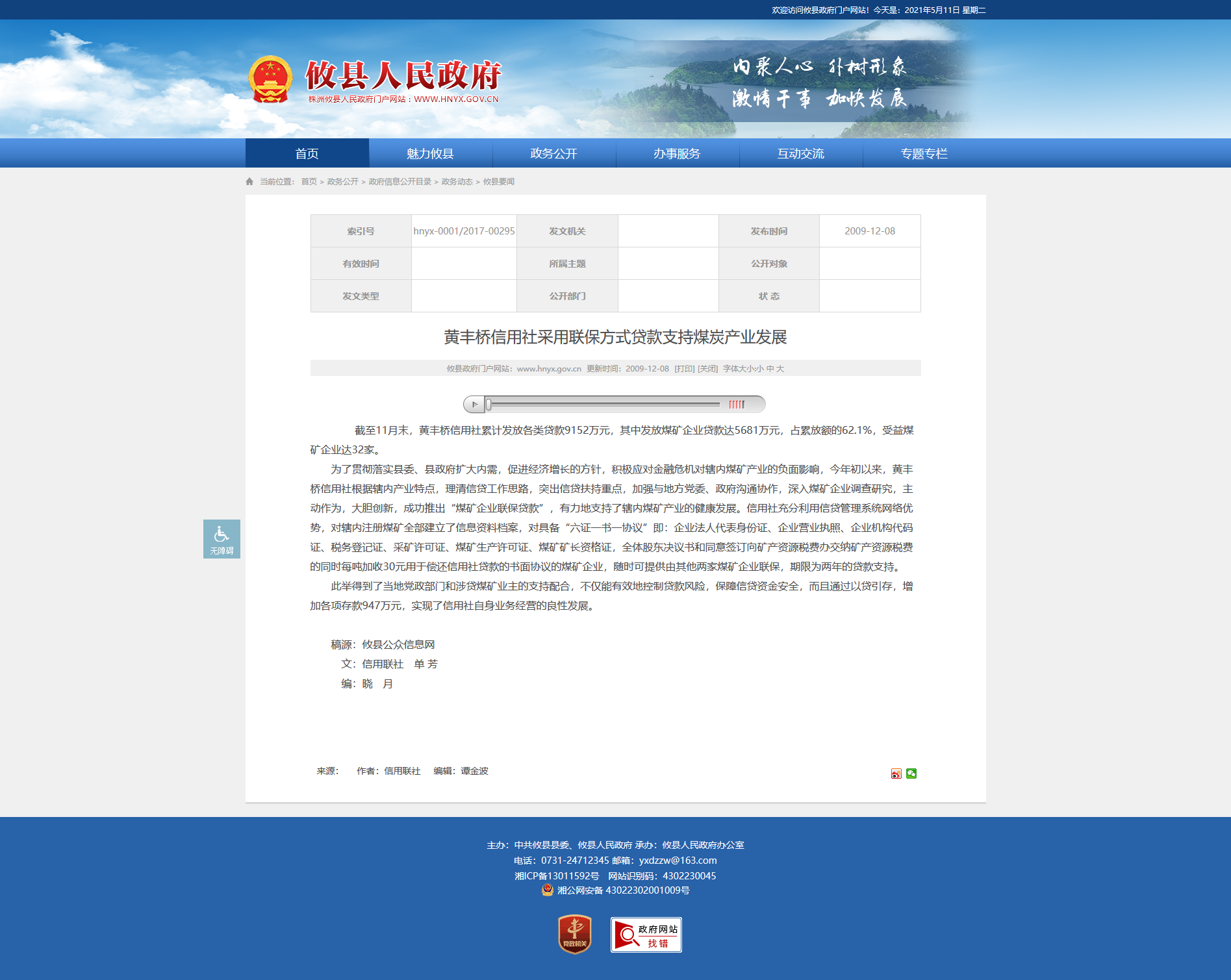 为了贯彻落实县委、县政府扩大内需,促进经济增长的方针,积极应对金融危机对辖内煤矿产业的负面影响,今年初以来,黄丰桥信用社根据辖内产业特点,理清信贷工作思路,突出信贷扶持重点,加强与地方党委、政府沟通协作,深入煤矿企业调查研究,主动作为,大胆创新,成功推出“煤矿企业联保贷款”,有力地支持了辖内煤矿产业的健康发展。信用社充分利用信贷管理系统网络优势,对辖内注册煤矿全部建立了信息资料档案,对具备“六证一书一协议”即:企业法人代表身份证、企业营业执照、企业机构代码证、税务登记证、采矿许可证、煤矿生产许可证、煤矿矿长资格证,全体股东决议书和同意签订向矿产资源税费办交纳矿产资源税费的同时每吨加收30元用于偿还信用社贷款的书面协议的煤矿企业,随时可提供由其他两家煤矿企业联保,期限为两年的贷款支持。