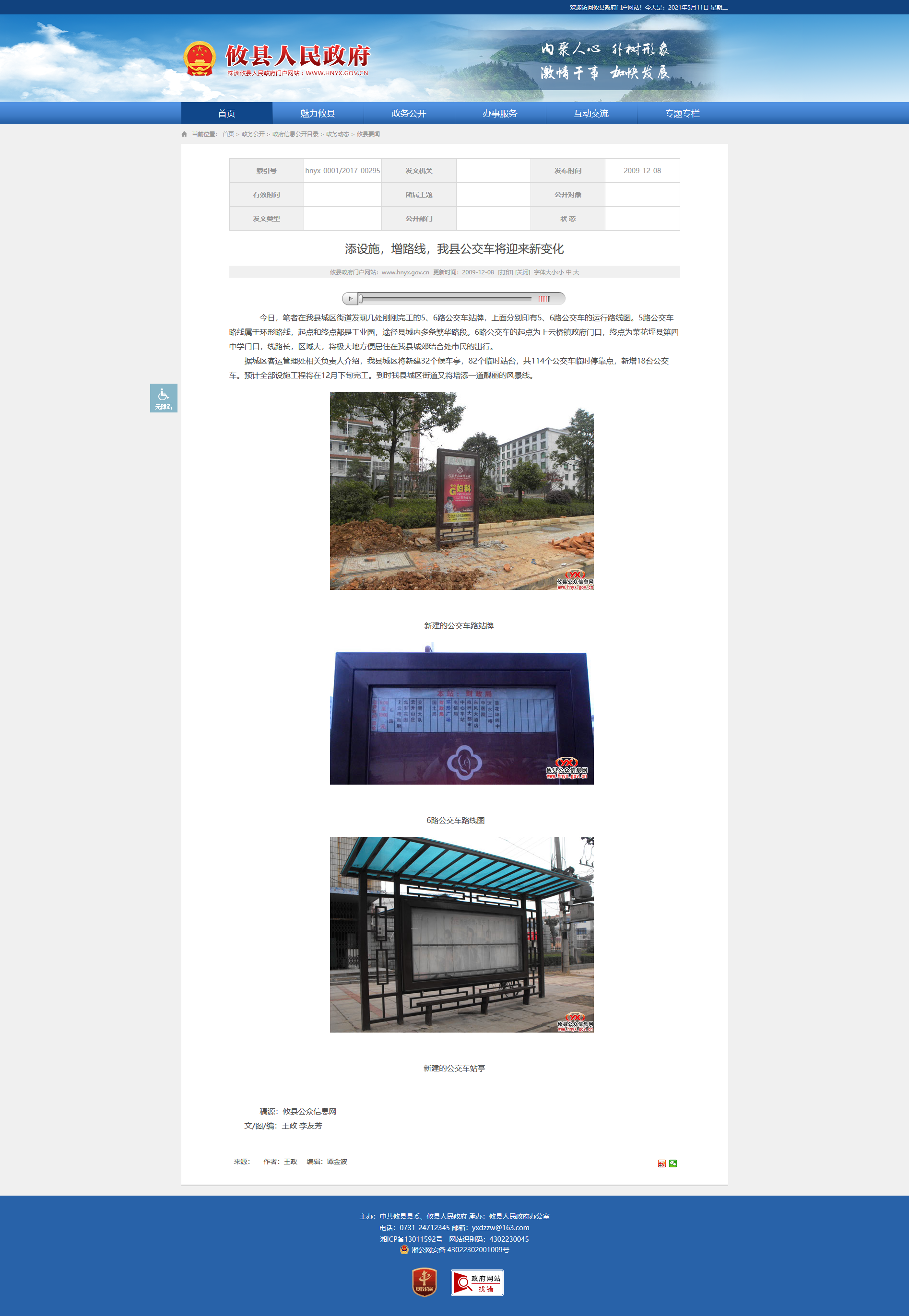 据城区客运管理处相关负责人介绍,我县城区将新建32个候车亭,82个临时站台,共114个公交车临时停靠点,新增18台公交车。预计全部设施工程将在12月下旬完工。到时我县城区街道又将增添一道靓丽的风景线。