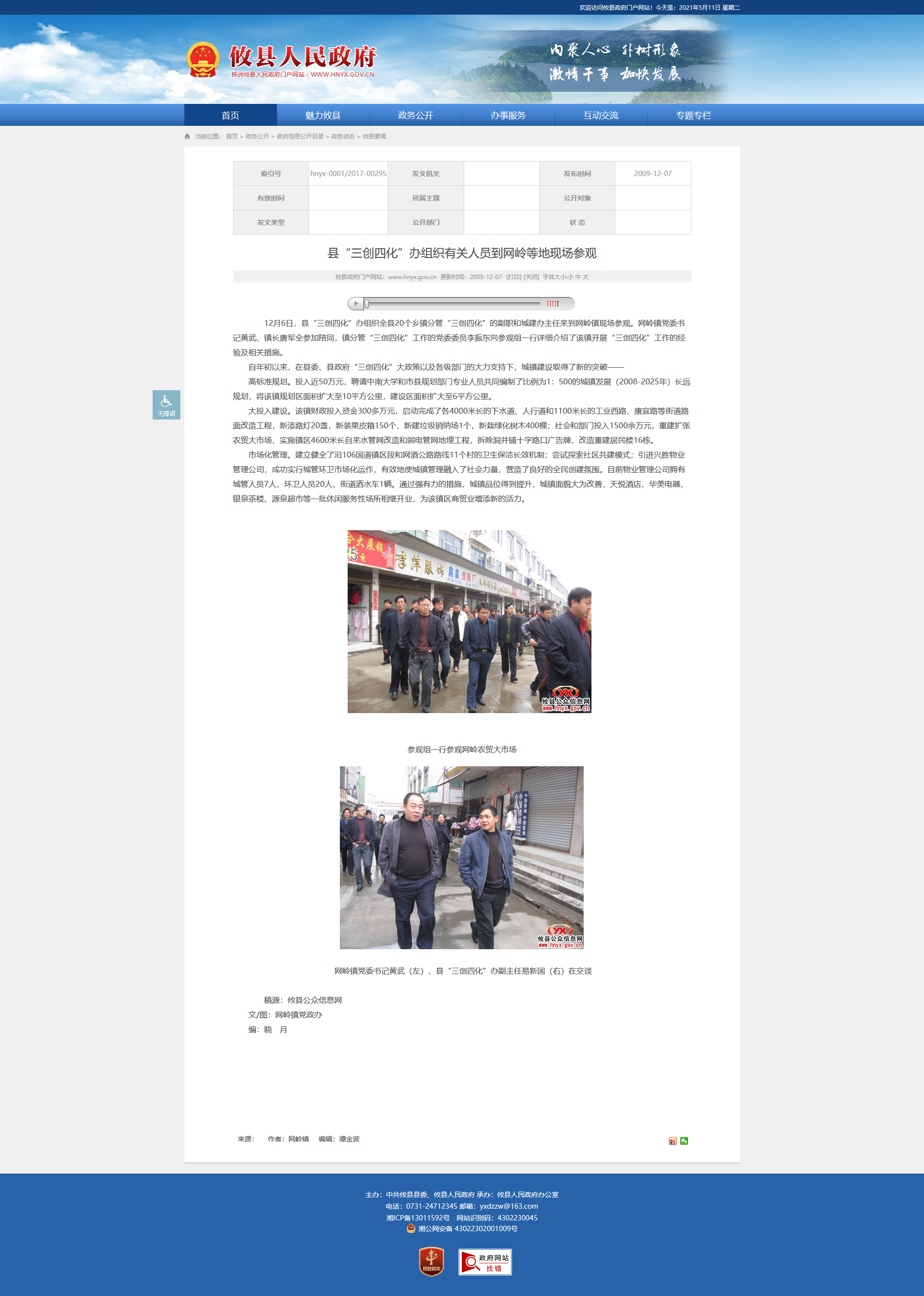 12月6日,县“三创四化”办组织全县20个乡镇分管“三创四化”的副职和城建办主任来到网岭镇现场参观。网岭镇党委书记黄武、镇长唐军全参加陪同,镇分管“三创四化”工作的党委委员李振东向参观组一行详细介绍了该镇开展“三创四化”工作的经验及相关措施。