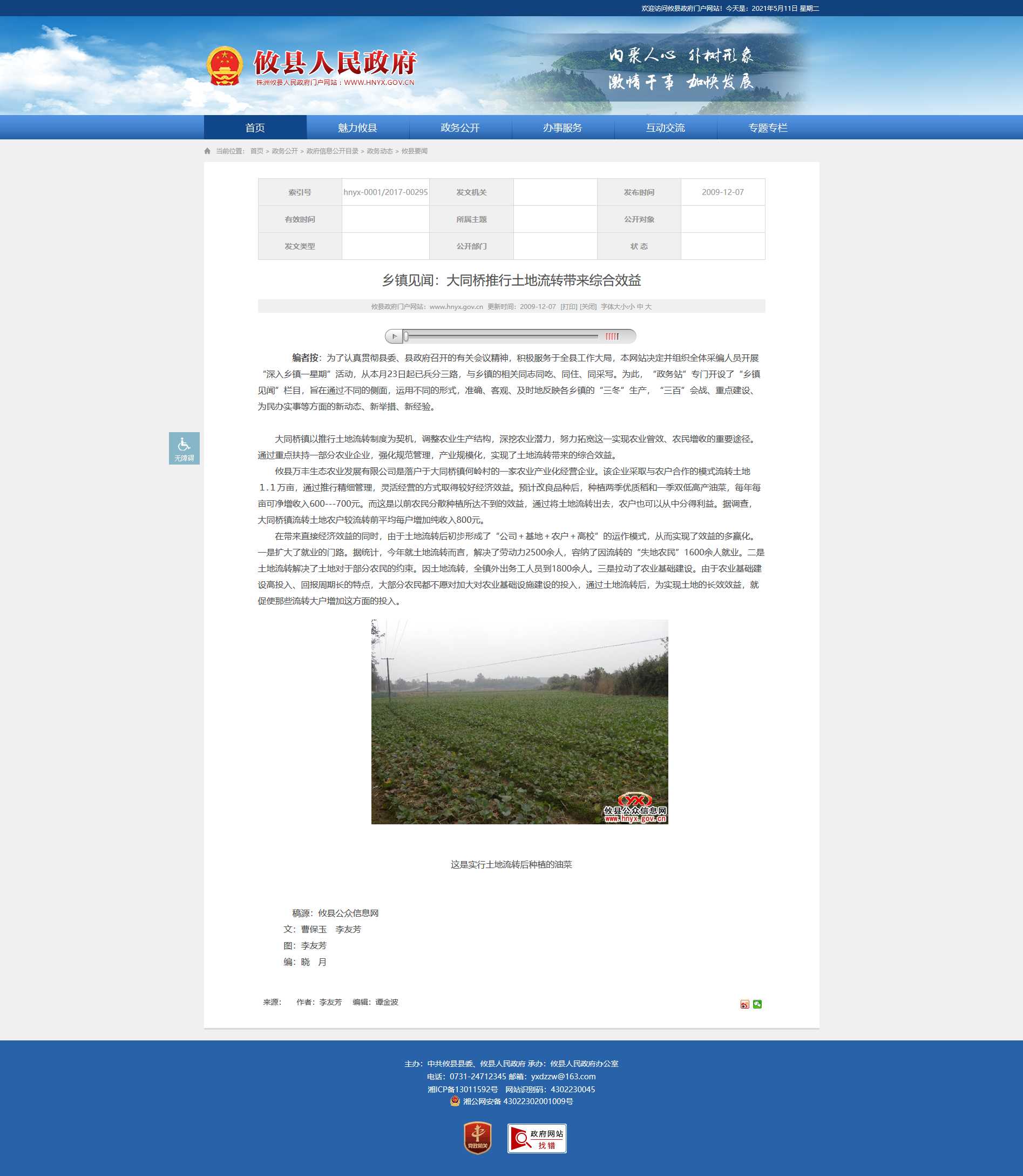 大同桥镇以推行土地流转制度为契机,调整农业生产结构,深挖农业潜力,努力拓宽这一实现农业曾效、农民增收的重要途径。通过重点扶持一部分农业企业,强化规范管理,产业规模化,实现了土地流转带来的综合效益。