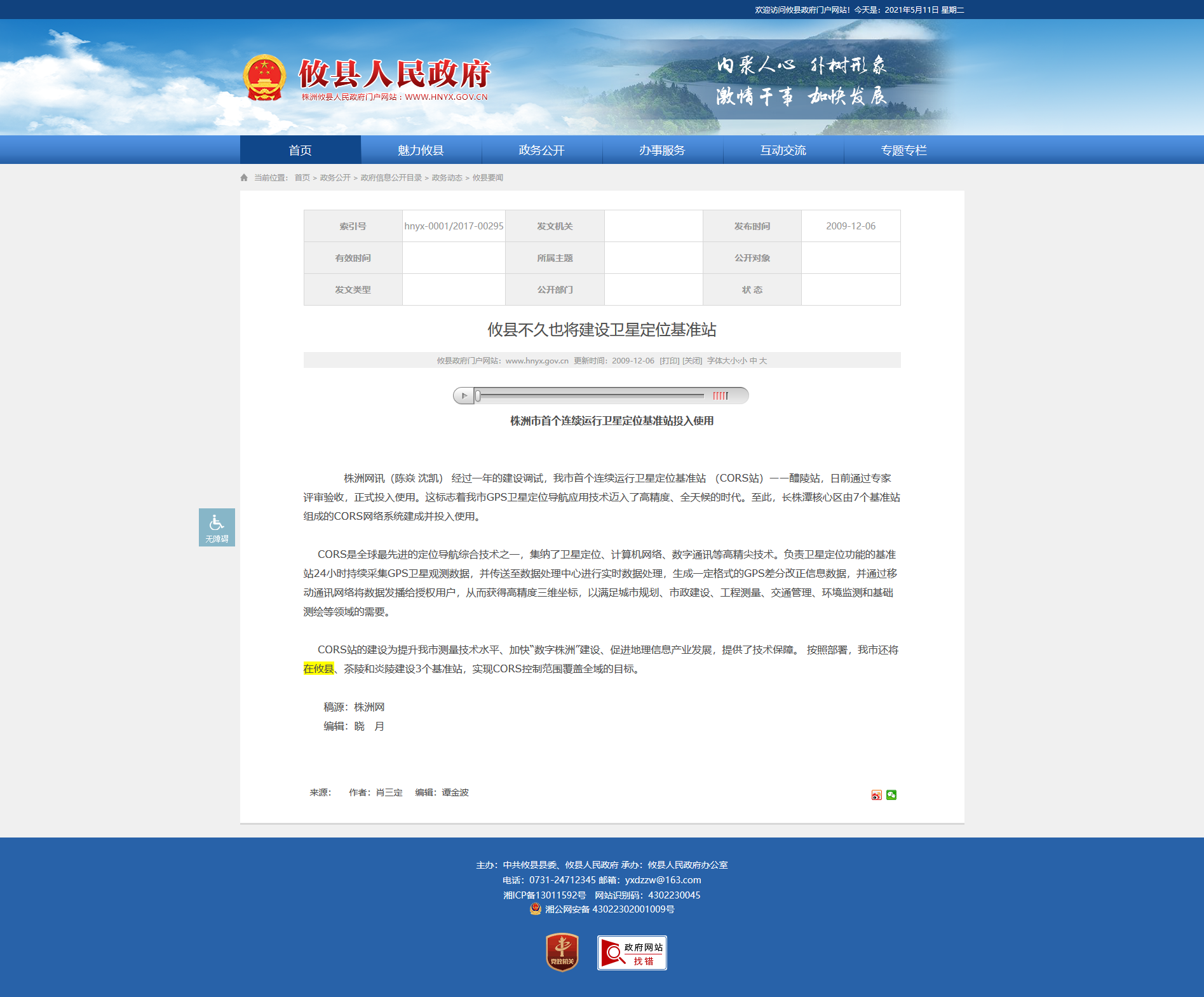 株洲市首个连续运行卫星定位基准站投入使用