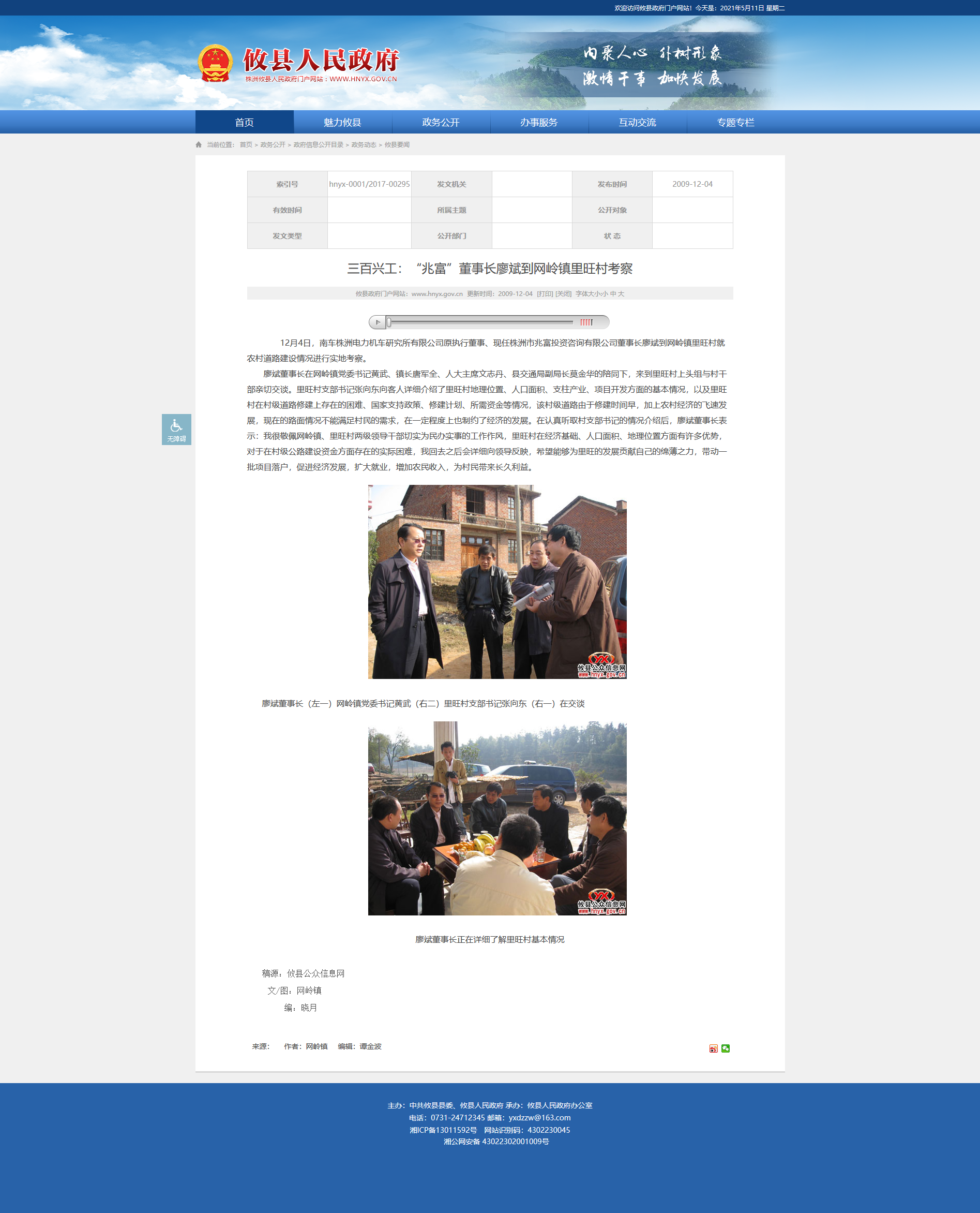 廖斌董事长(左一)网岭镇党委书记黄武(右二)里旺村支部书记张向东(右一)在交谈