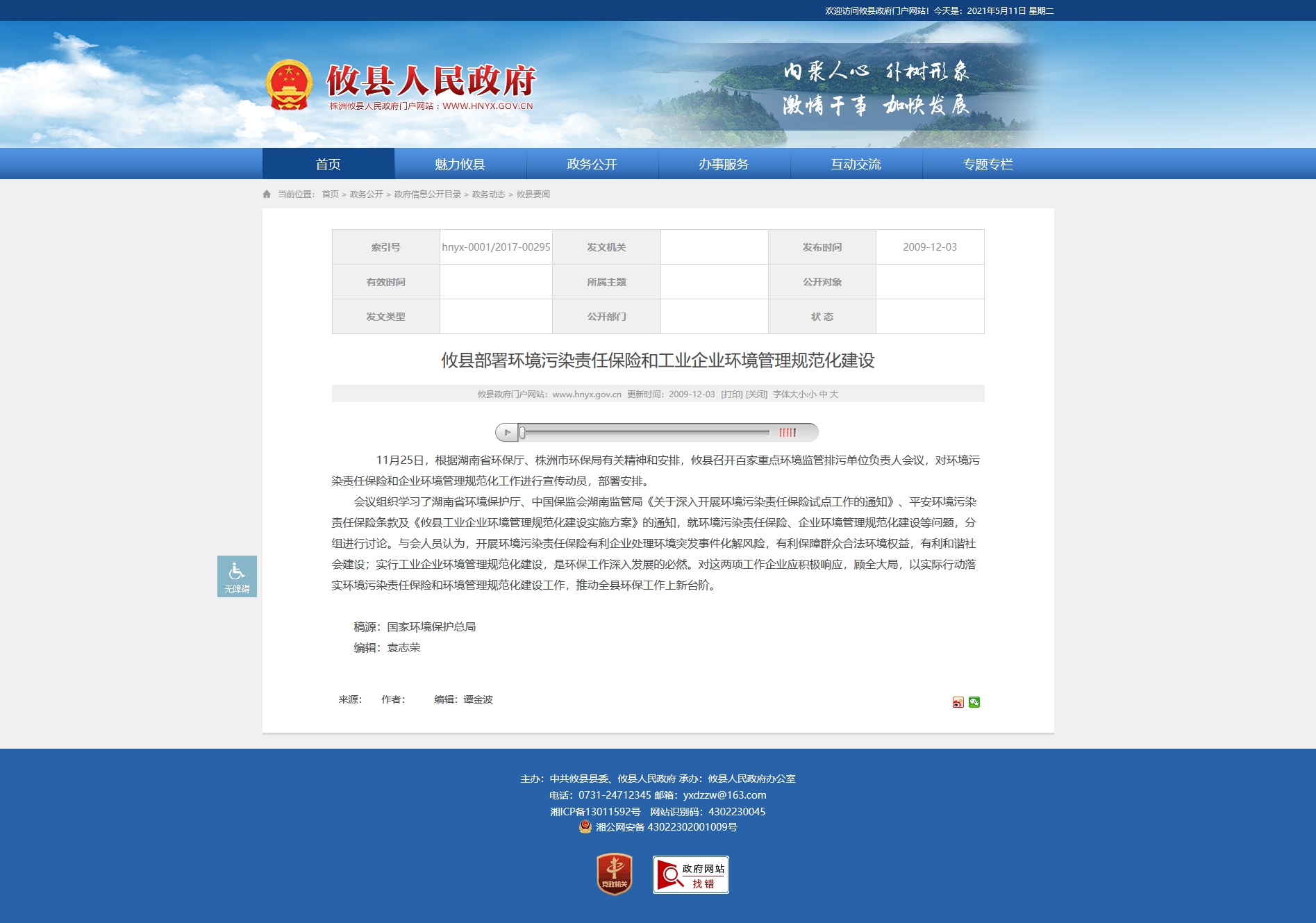 11月25日,根据湖南省环保厅、株洲市环保局有关精神和安排,攸县召开百家重点环境监管排污单位负责人会议,对环境污染责任保险和企业环境管理规范化工作进行宣传动员,部署安排。